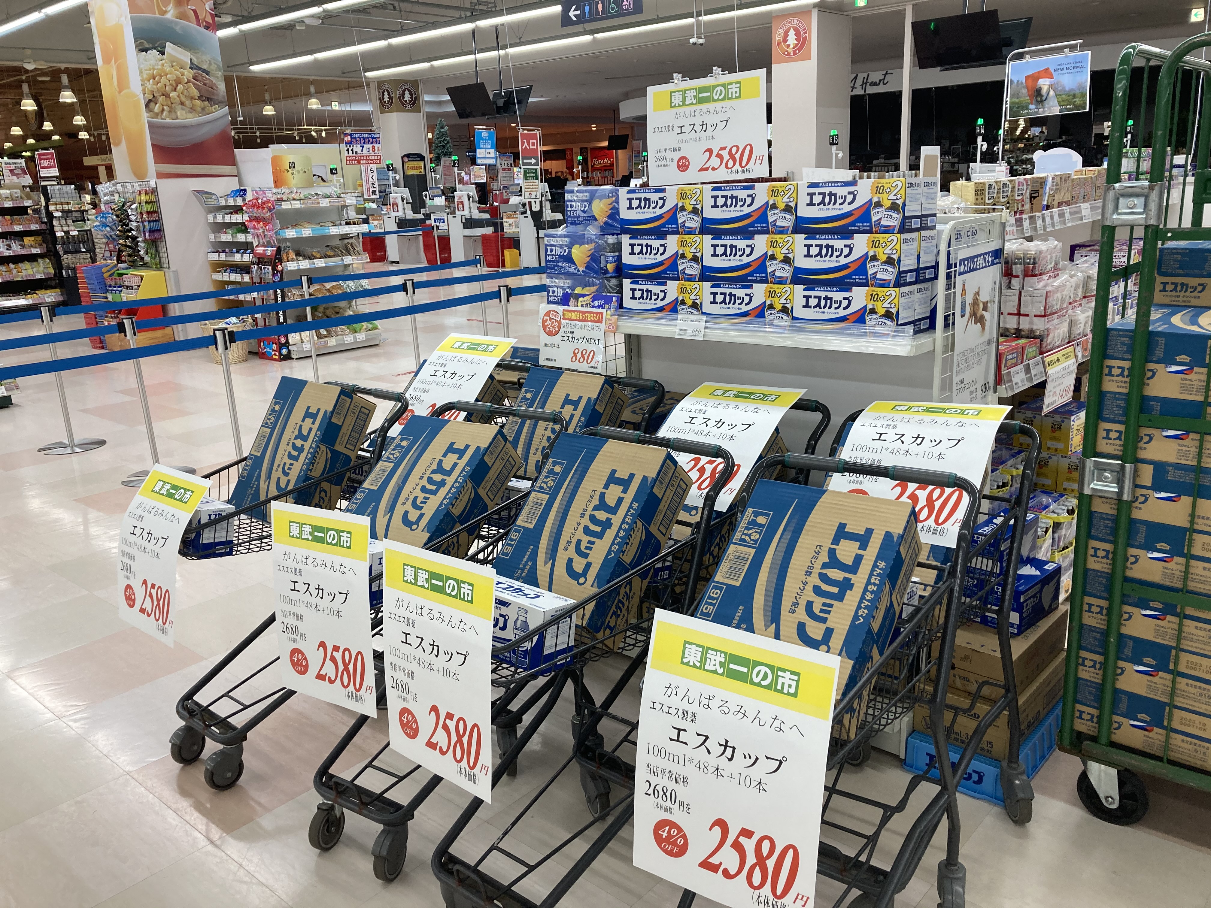 みなさんこんにちは!今日は月に一度のお買い得な日,東武一の市です!ドラックコーナー本日はエスカップがお買い得です!お買い得なこの機会是非ご利用くださいね