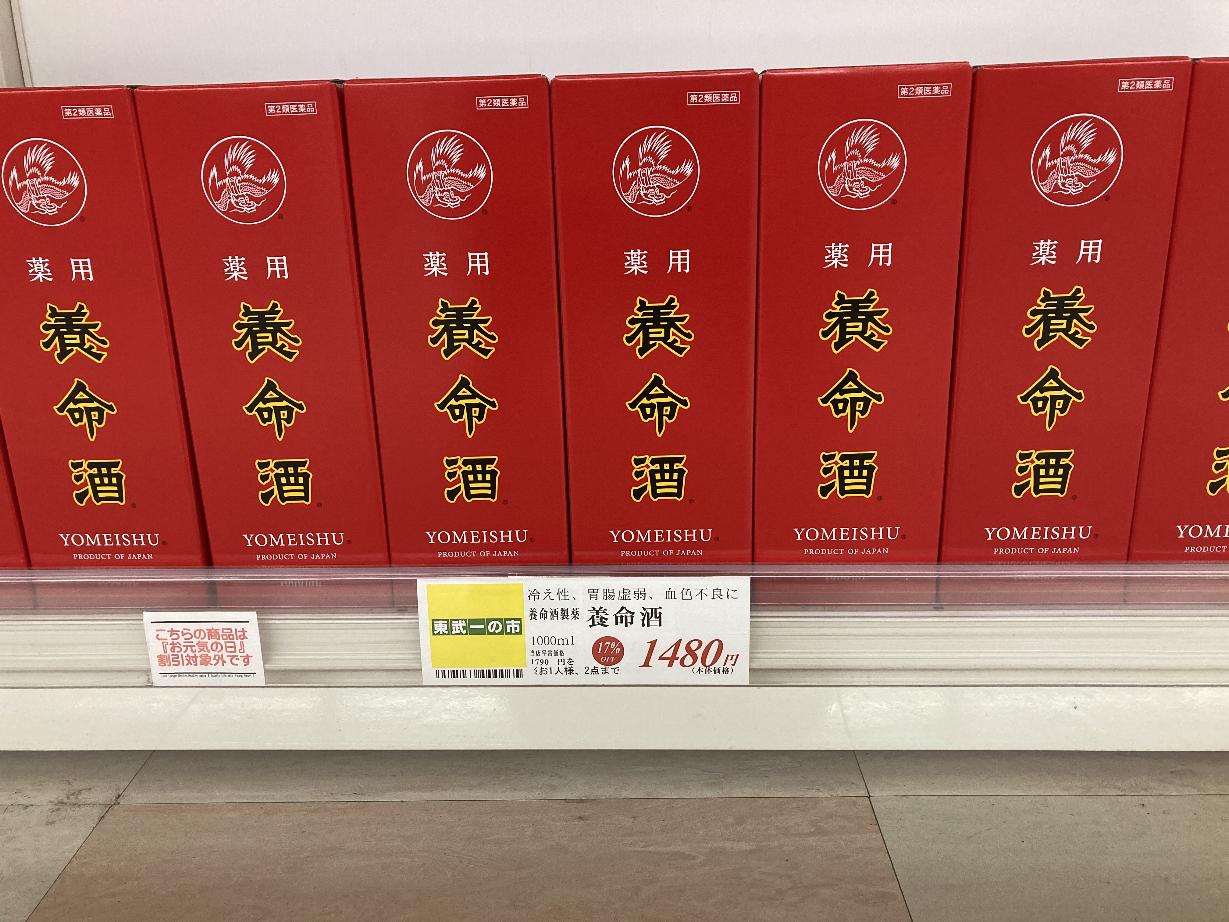 みなさんこんにちは!ドラックコーナー本日のお買い得品は「養命酒」です!冷え性、胃腸虚弱、食欲不振におすすめ商品です!本日はお買い得価格にて販売いたします!お得なこの機会に是非ご利用ください!