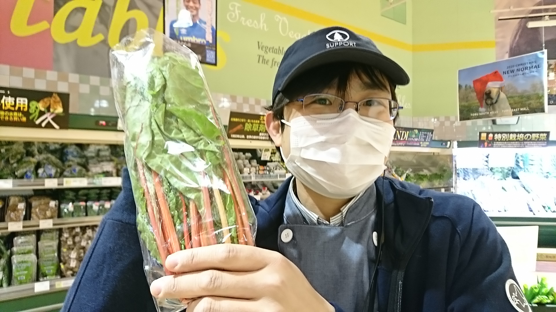 青果担当苫米地より、本日のオススメ商品です。今日ご紹介するのは釧路産のスイスチャードです。見た目はカラフルですが、味はほうれん草に近く、似たような使い方ができます。炒め物やおひたし、和え物などにいかがでしょうか?ぜひご利用ください。