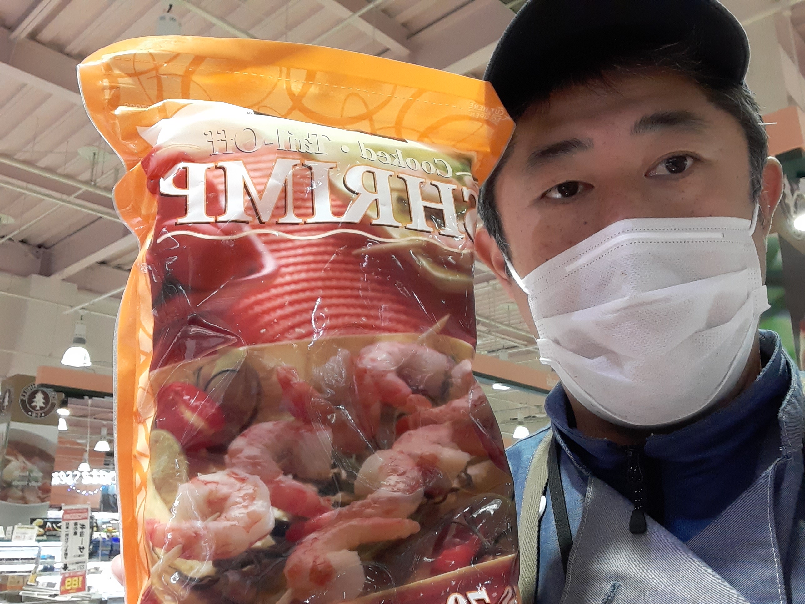 おはようございます!本日はタイ王国特大冷凍エビ!約一キロ入りまして2990円と凄くお買い得!エビチリ、フライ、などいろいろ使えて便利!是非とも鮮魚コーナーでお待ちしています。