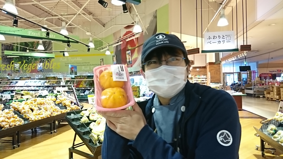 青果担当苫米地より、本日のオススメ商品です。今日ご紹介するのは石川産の高松紋平柿です。大玉でとろけるような食感でコクのある甘さの柿です。見た目はすこしぼこぼこしていますが美味しい柿ですので、ぜひご利用ください。
