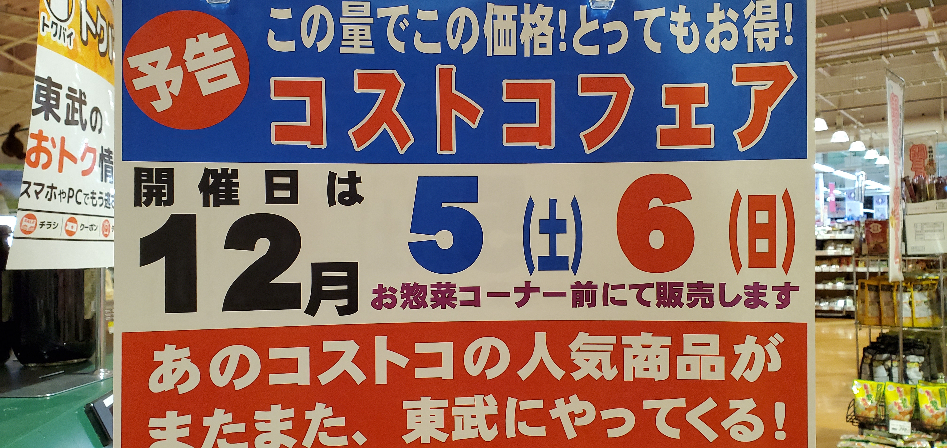 もう12月に入りますね!毎月好評のコストコフェアは年内の予定が残り2回となりました。12月は5日と6日の二日間と年内ラストが12日と13日の二日間の予定で終了となります。今からスケジュールを組んでいただきぜひ、ご来店予定立てていただいてご利用お待ちしております。(^o^)/