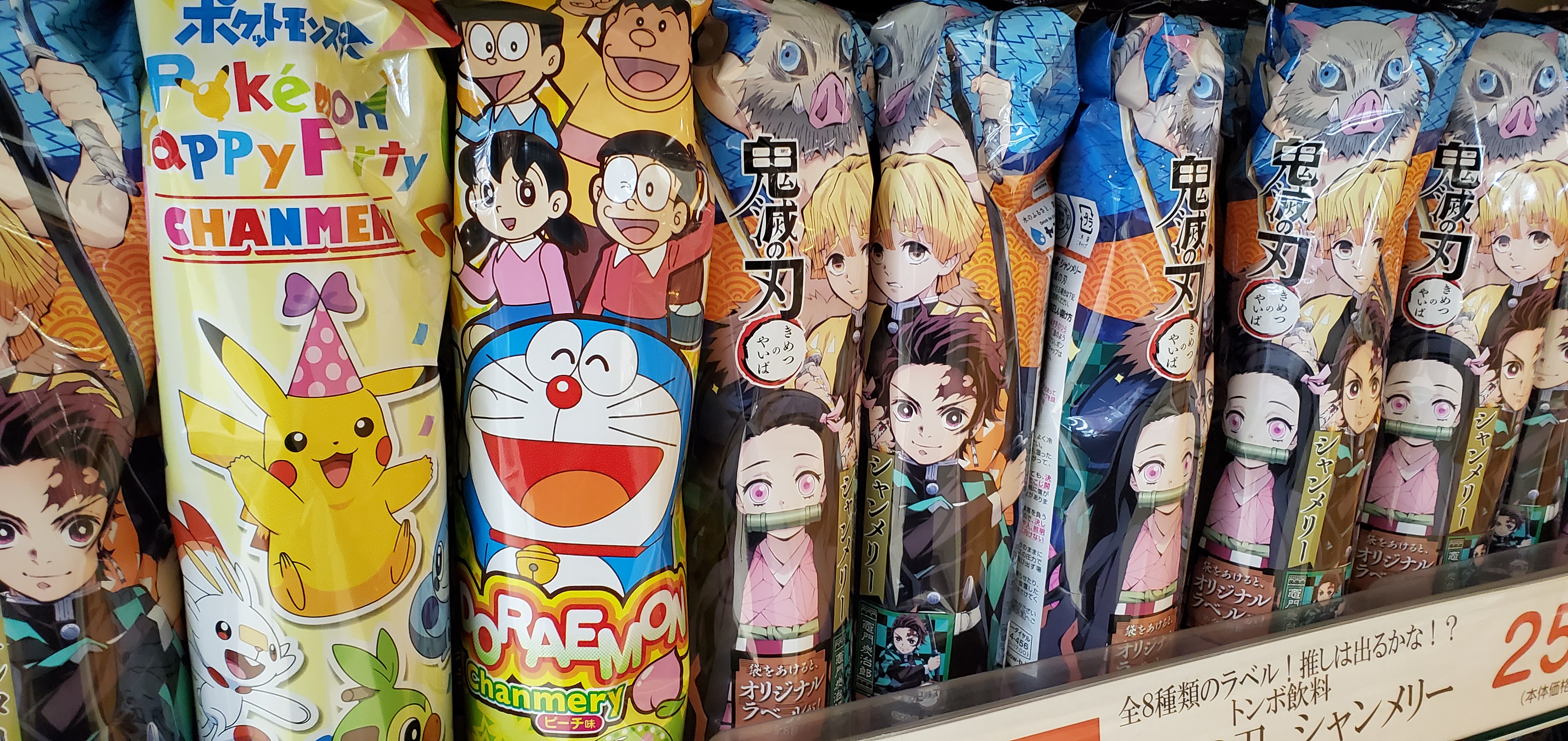 クリスマスにはシャンメリーも用意しておきたいですね!人気の鬼滅の刃のシャンメリーは人気で今のうちからストックしても良いかもしれません。そのほかドラえもんやピカチュウなど色々ありますのでご利用お待ちしております。(^o^)/