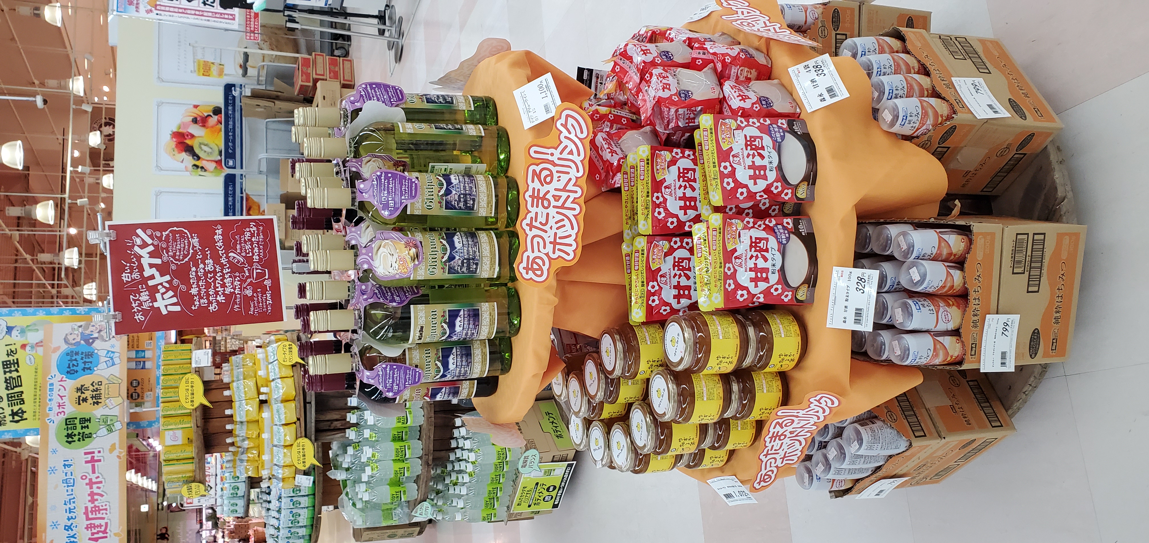 まだ雪が積もってませんが寒さが深まってきましたね!体も冷えて風邪対策にホットワインや甘酒、柚茶やココアなどで温まりませんか?ホットドリンクコーナーも用意してご提案させていただいておりますのでぜひ、ご利用お待ちしております。