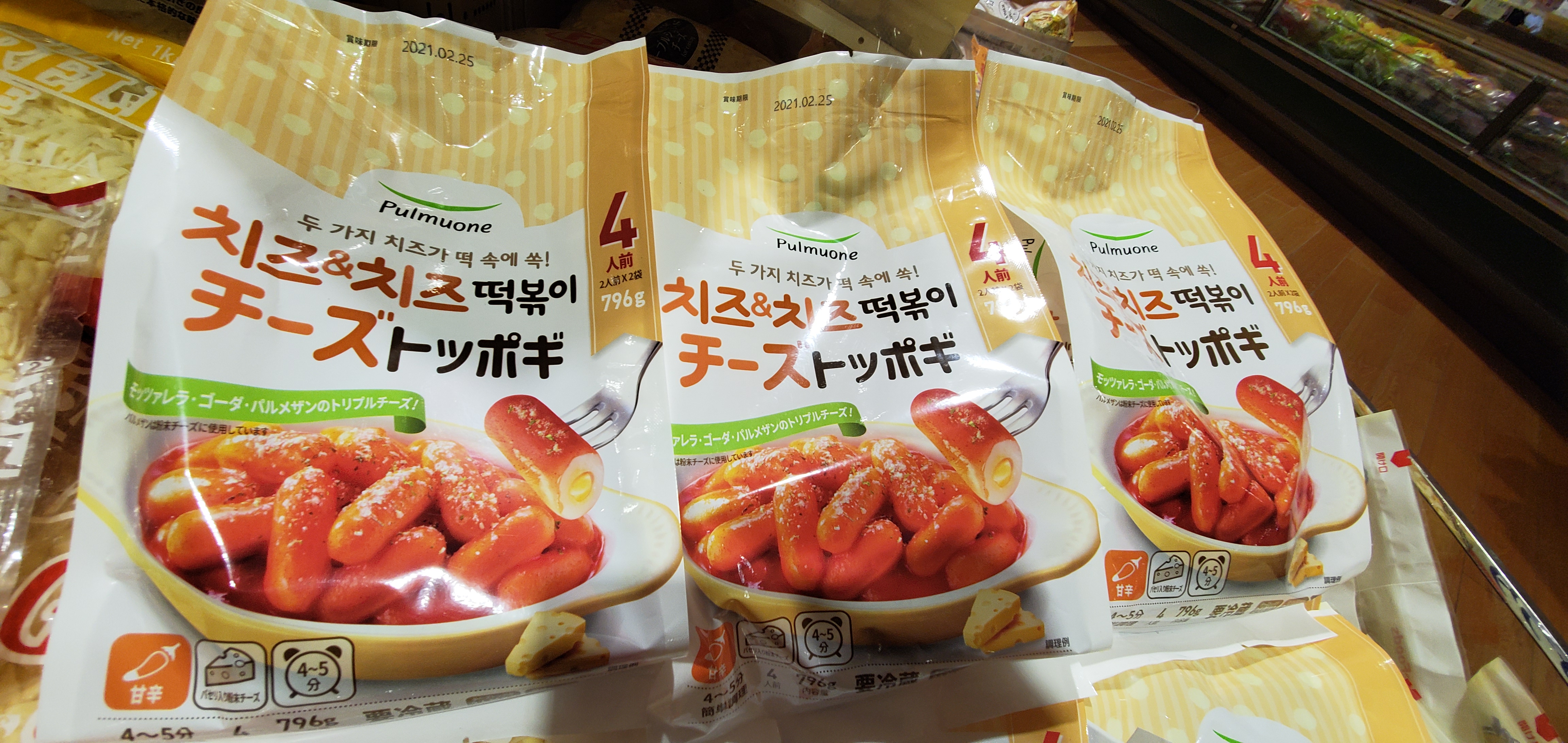 コストコから日本でも人気の韓国鉄板グルメのトッポギはいかがですか?中にチーズが入ったお餅をフライパンで加熱して専用ソースで出来上がります。お好みで野菜やベーコンなどを入れてもいいですね!ぜひ、ご利用お待ちしております。(^o^)/また、今週末はコストコフェア開催予定しております。