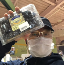 今日のおすすめは大粒のブルーベリーです。ヨーグルトのトッピングや、お菓子作りに使ってください。