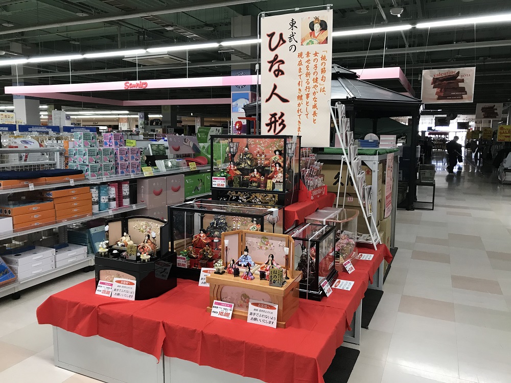 当店では雛人形を展示販売中。