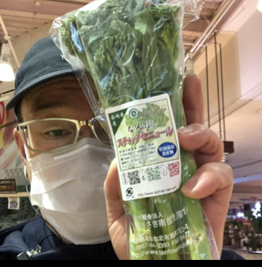 今日のおすすめは長崎県産スティックセニョールです。形はアスパラで先端に小さなブロッコリーがついてるんです。肉と炒めたりパスタやスープに入れても美味しいんです。是非お試し下さい。