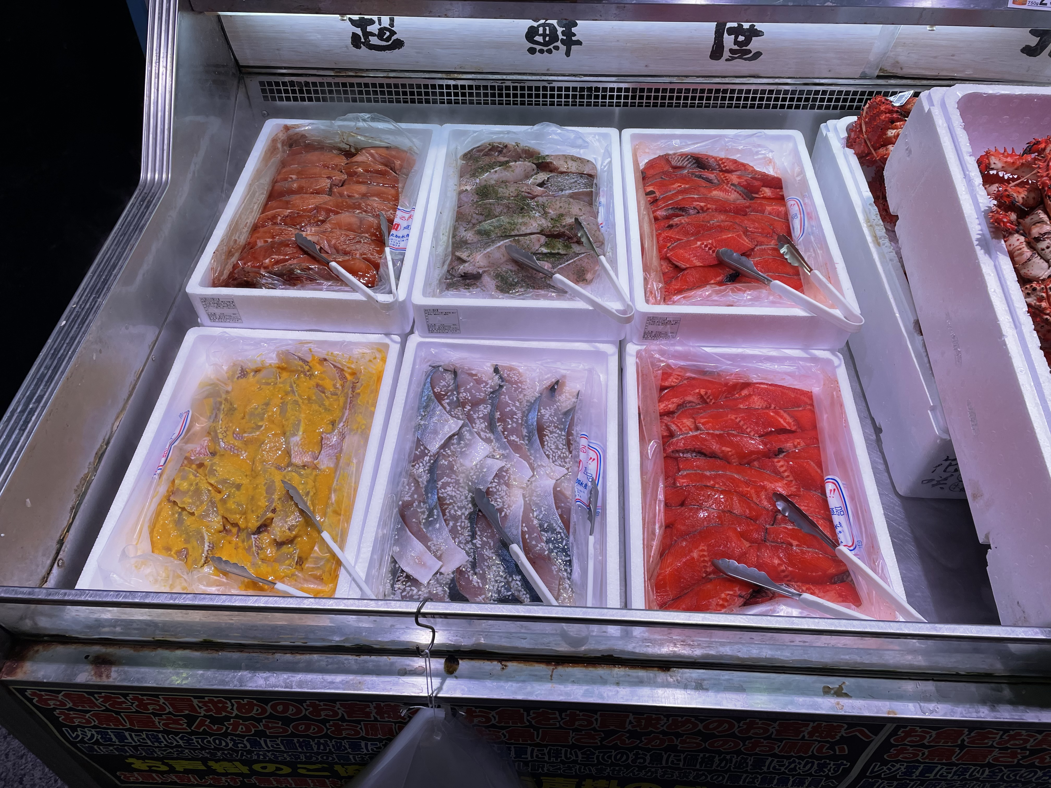 おはようございます。今日は、漬魚がどれでも1切77円での販売です。おいしいお魚をぜひ、どうぞ!