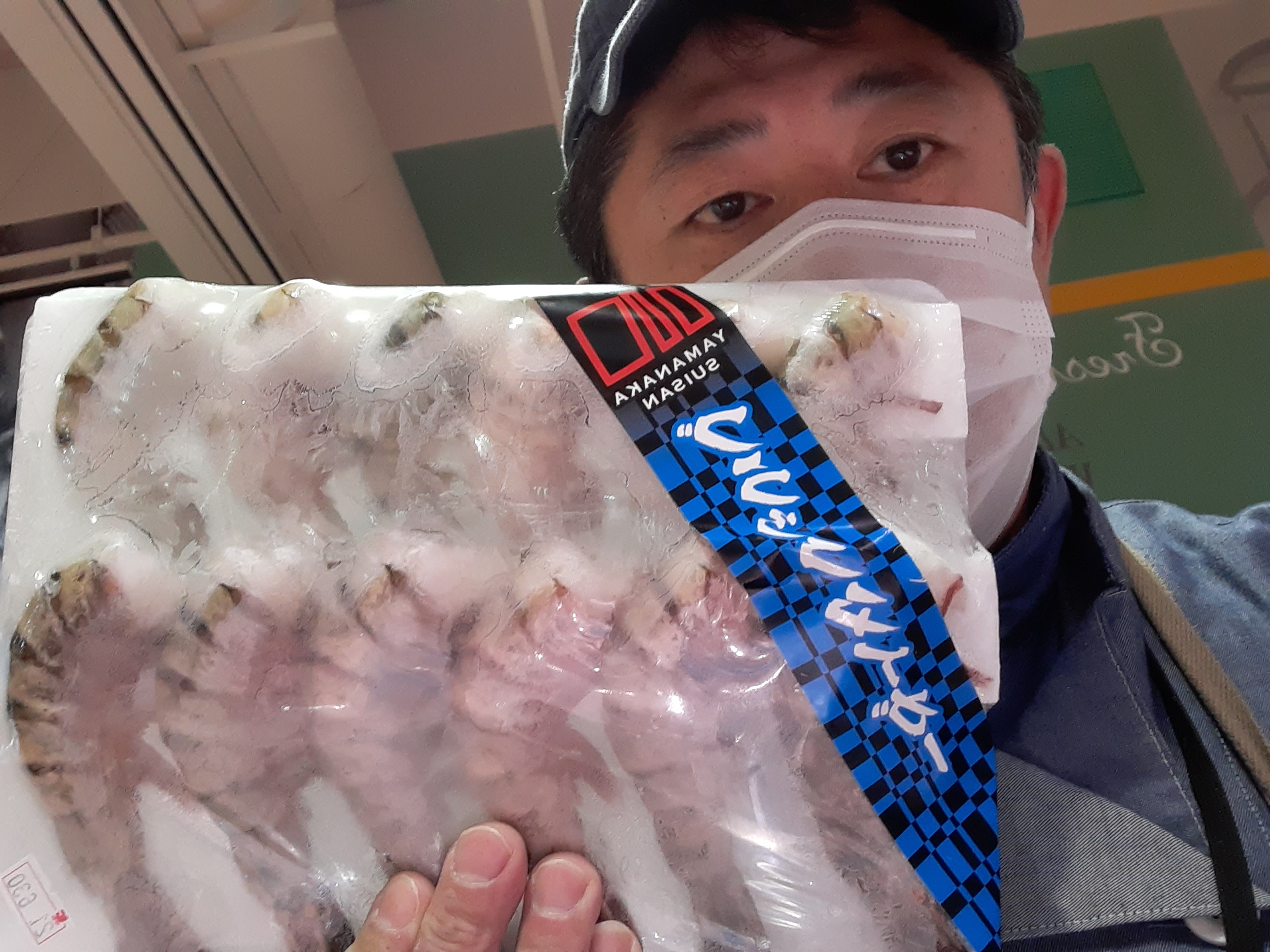 おはようございます。本日は冷凍 インドネシア産 超特大ブラックタイガーエビ 12尾入で超お買い得!!なんと999円!!エビチリ、エビマヨ、天ぷら、フライいろいろな料理で美味しく食べれるこの商品!!是非お試し下さい。本日も鮮魚コーナーでお待ちしております。
