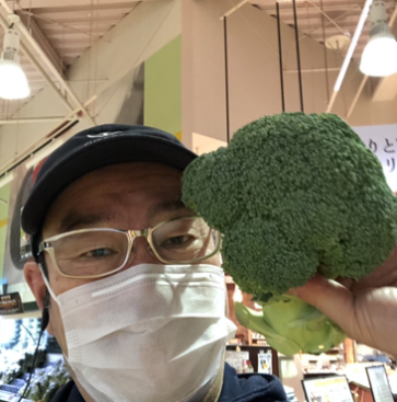今日のおすすめは茨城から来たでっかいブロッコリーです。茹でてサラダに蒸して温野菜でどうぞ。