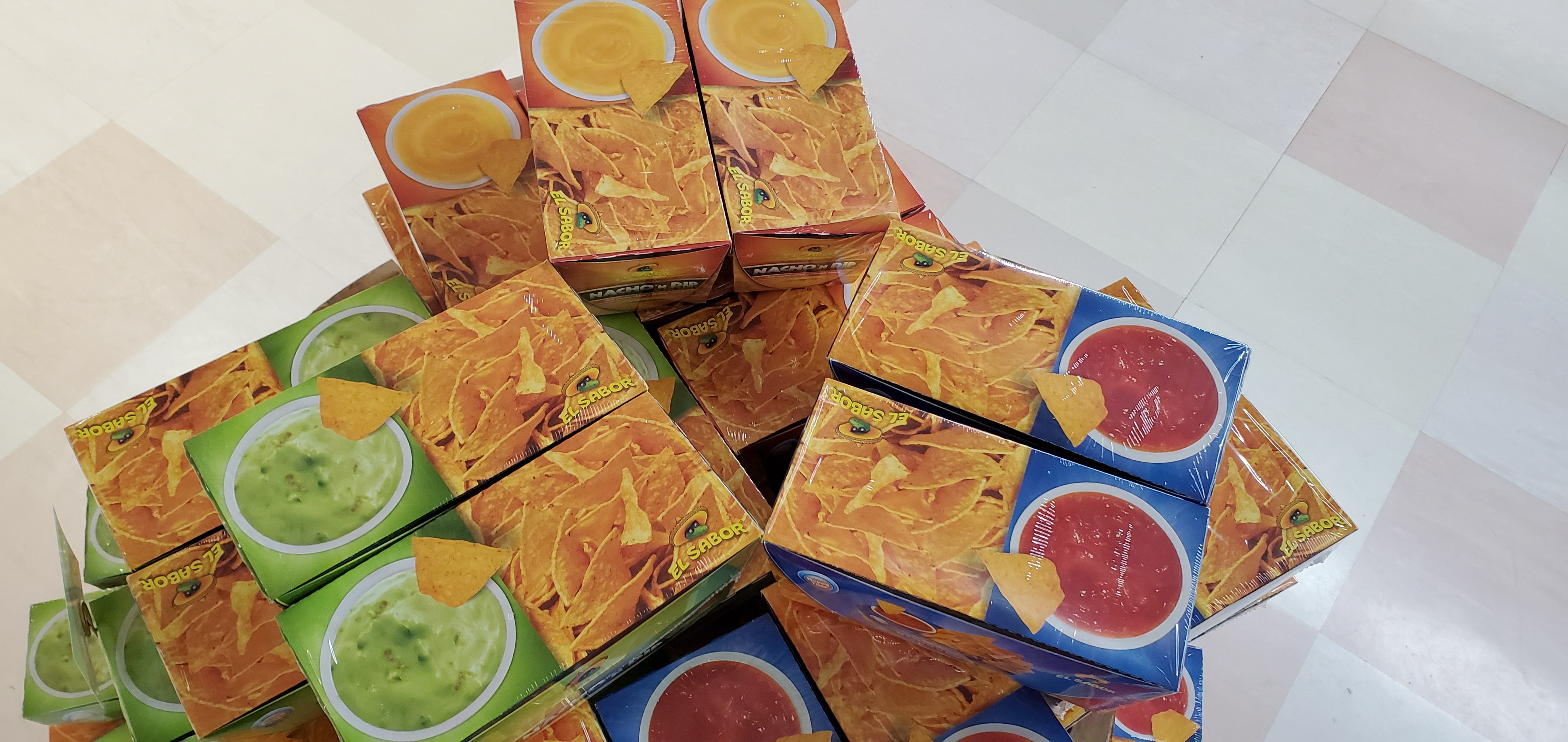 エル サボール ナチョディップ菓子が入荷してます。チーズ、アボカド、サルサの3種類の味が楽しめます。レジ前にて販売していますのでご利用お待ちしております。\(^o^)/
