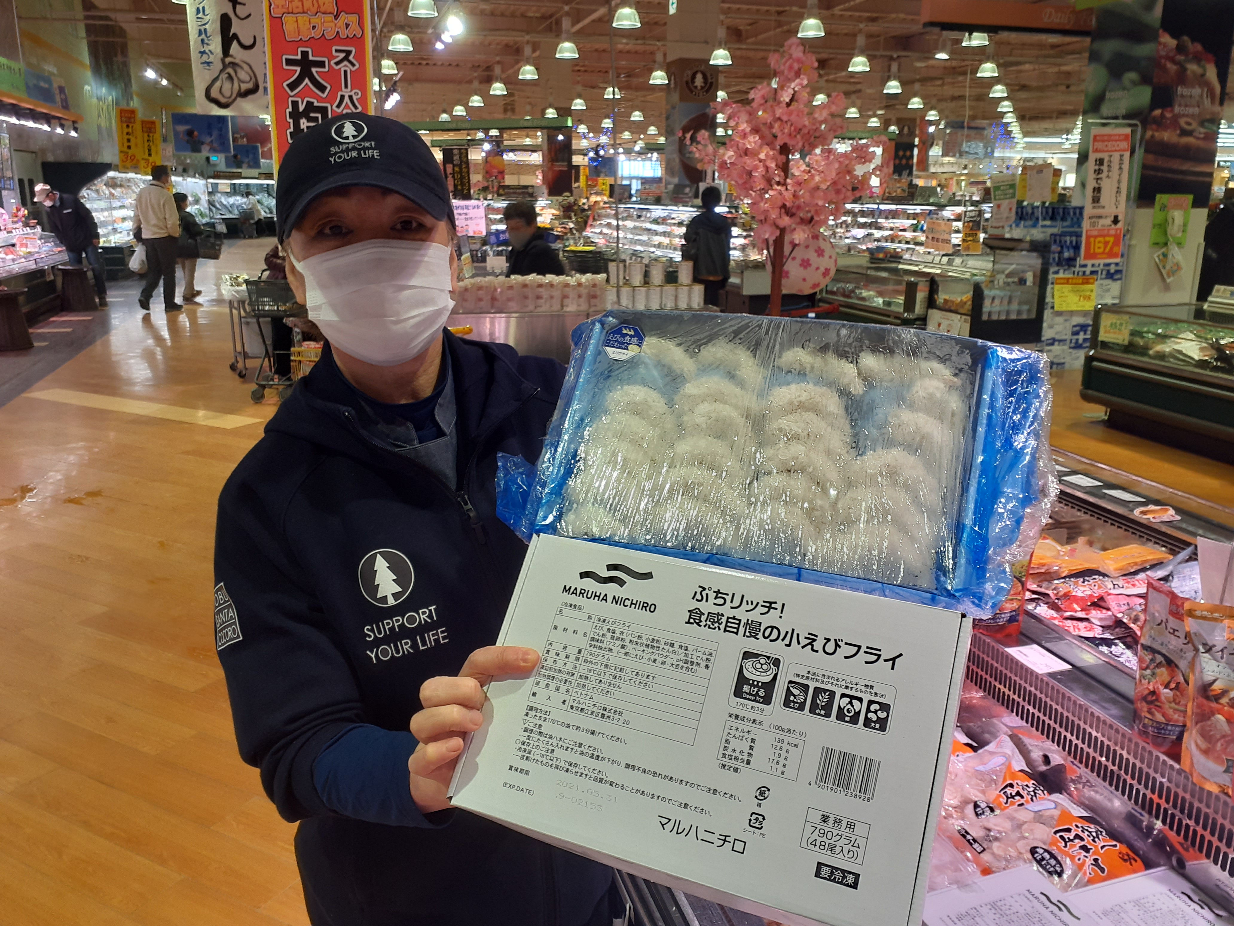 おはようございます。本日は揚げるだけ簡単!!マルハニチロぷちリッチ!! 食感自慢の小エビフライ!!790g 980円!!あと1品欲しい時に簡単!是非お試しください。本日も鮮魚コーナーでお待ちしております。