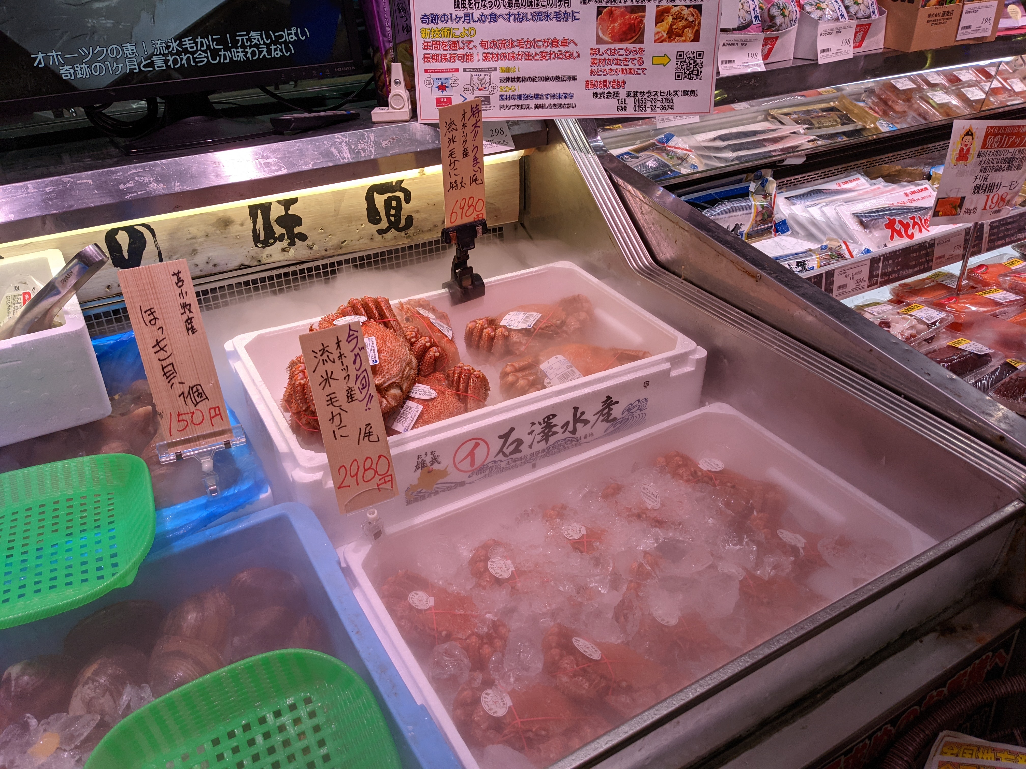 鮮魚コーナーでは今だけの味わい、流氷毛ガニを販売中!ミソはたっぷり、身もギッシリです!どうぞご利用くださいませ!