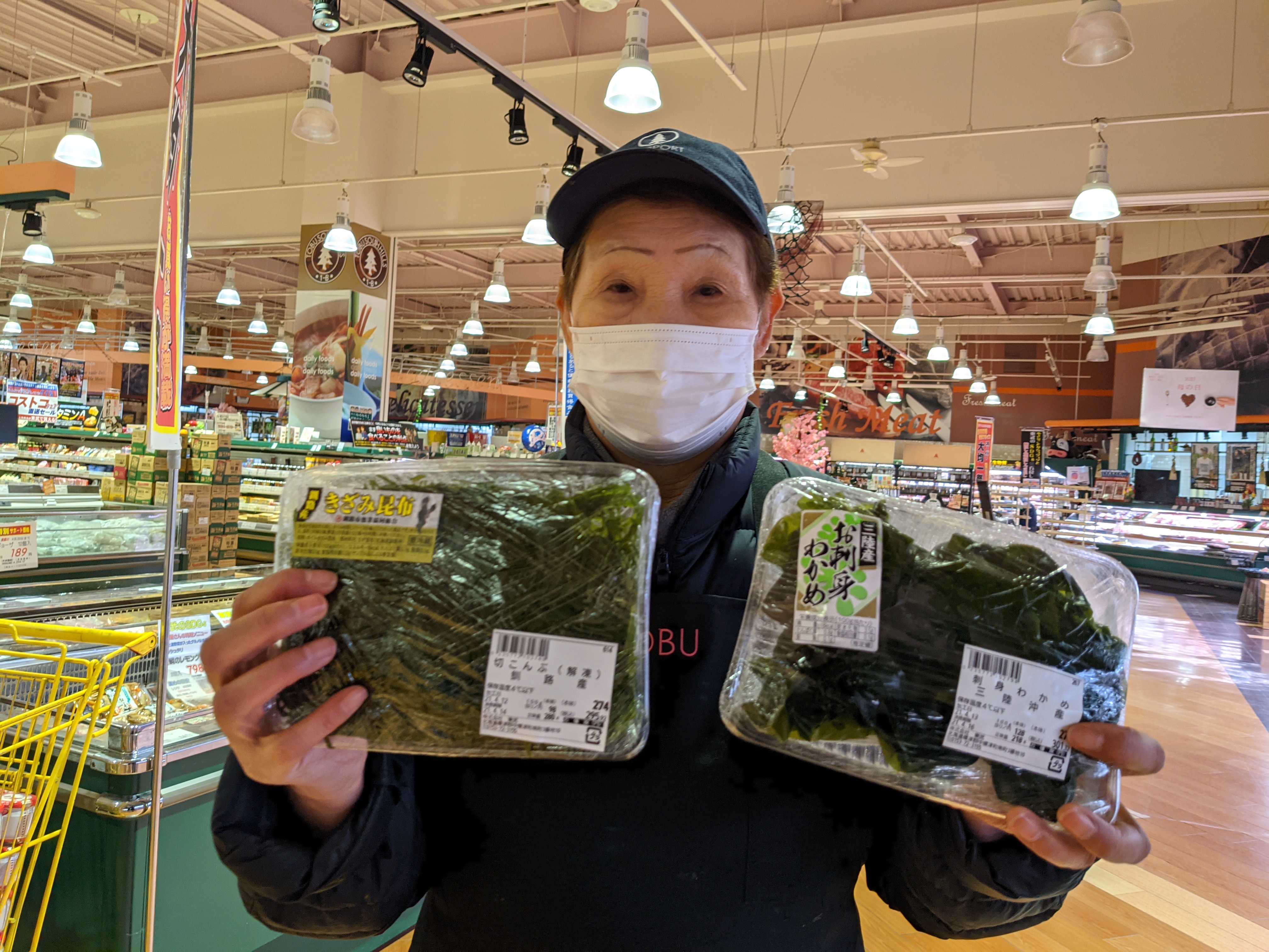 鮮魚コーナーでは春が旬の海藻類を販売中ですよ!ミネラルたっぷり美味しいです!是非ご利用くださいませ