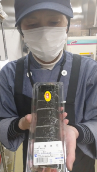 おはようございます。お惣菜コーナーでは太巻き寿司を販売中!当店で巻きあげたふっくら美味しい具沢山の太巻き寿司。酢飯にも拘った逸品です。ぜひご利用ください。