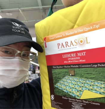 コストコのレジャーマットは撥水加工してあるので湿った地面でも大丈夫。おまけに洗濯機洗いが可能なので外で使い倒しちゃってください。