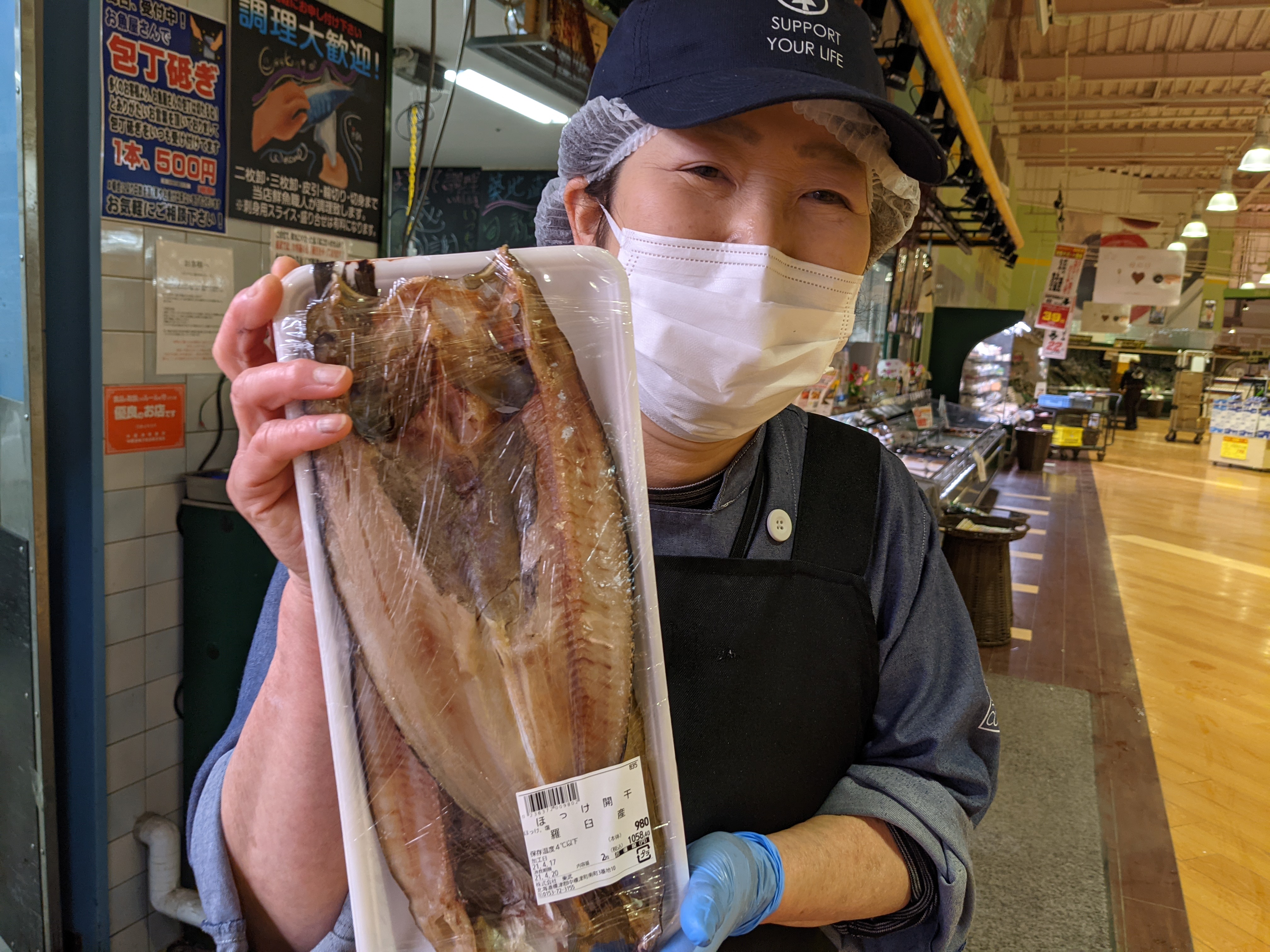 鮮魚コーナーでは美味しい開きほっけを販売中!中標津市場特製の脂ののった大きなほっけですよ!是非ご利用くださいませ