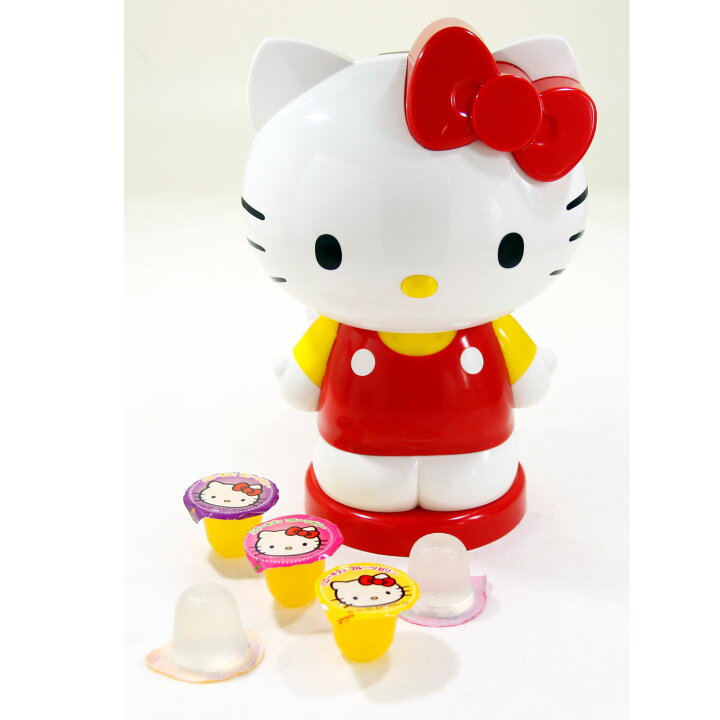 ハローキティのかわいい容器にフルーツ風味のゼリーを入れました。食べ終わったら貯金箱になります。<内容量>ゼリー260g1,296円(税込)