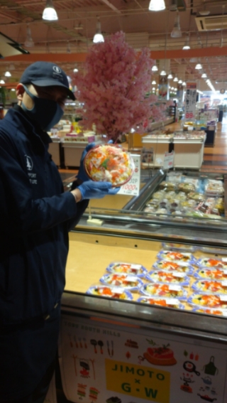 おはようございます。ゴールデンウィーク真っ只中!お惣菜コーナーではお寿司よりどり2パック1000円セール開催中。通常のちらし寿司から鯉のぼりに見立てたかわいいちらし寿司、かにちらしなど多数取り揃えております。是非ご利用ください。
