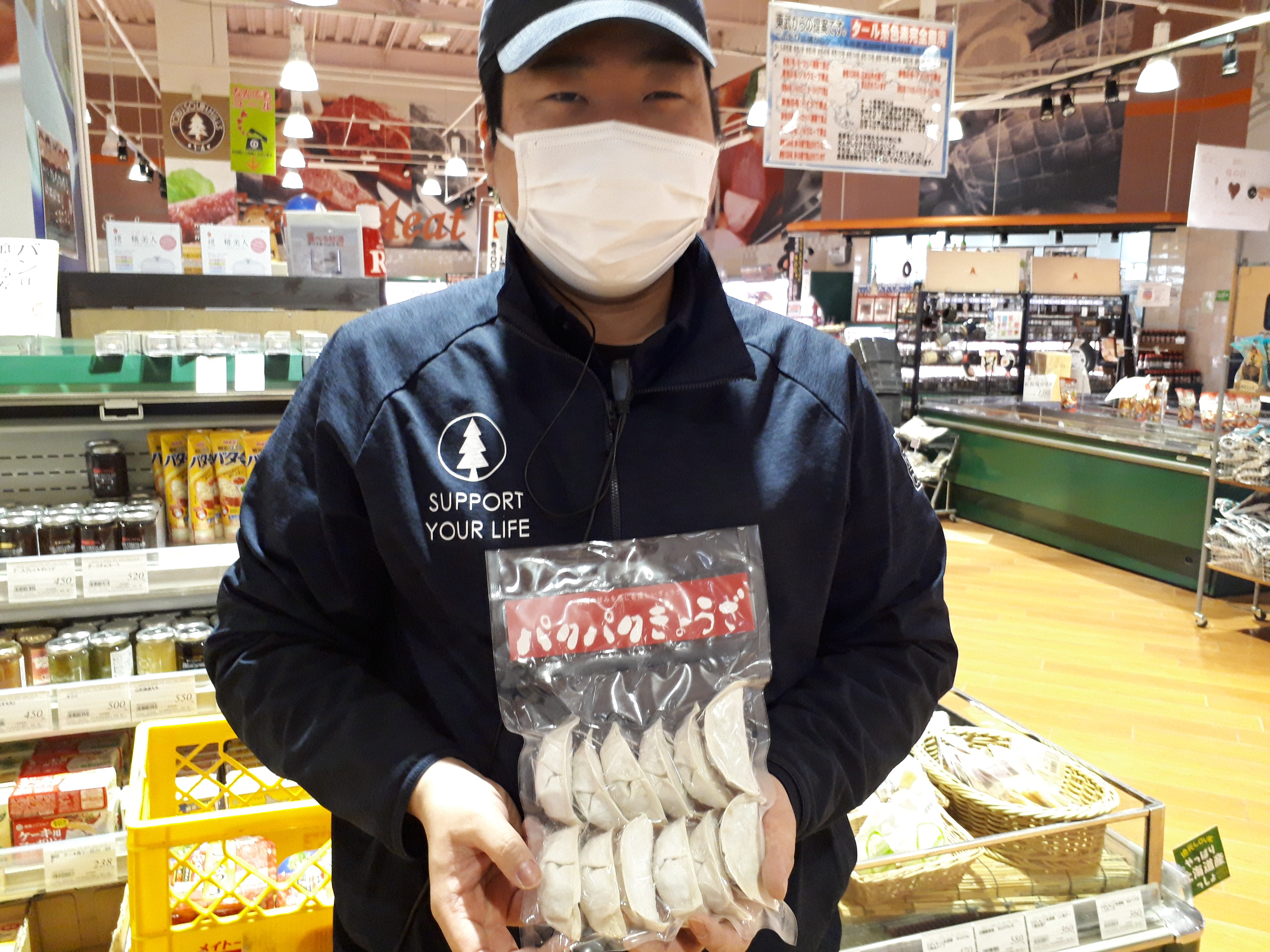 おはようございます。日配コーナーのおすすめは、中標津さとうさんちの餃子。地元でも人気のある、美味しい餃子です。野菜の甘味を感じる優しい味です。ぜひ、ご賞味ください。
