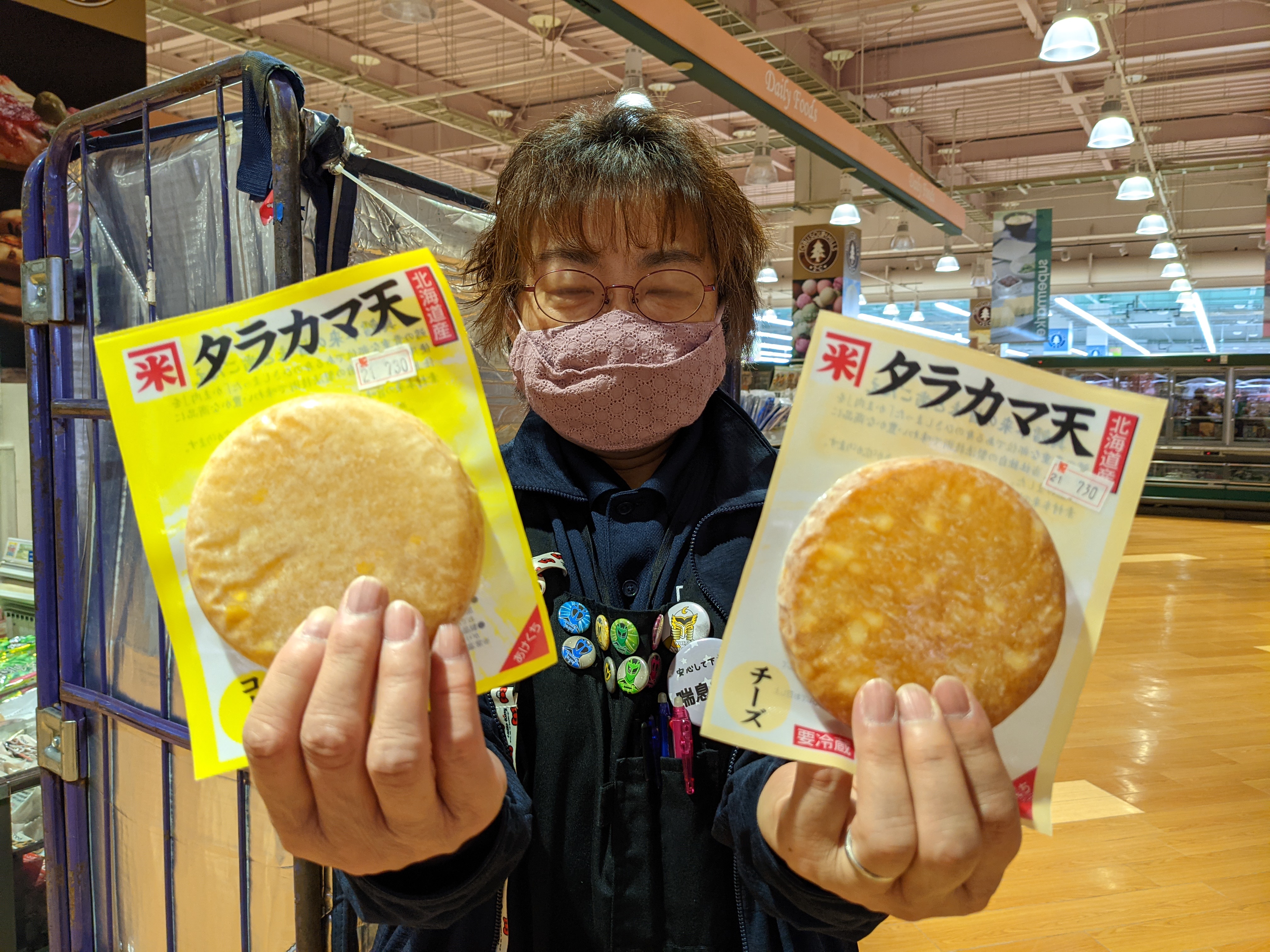 鮮魚コーナーでは美味しいたらカマ天を販売中!おかず、オツマミに是非ご利用くださいませ