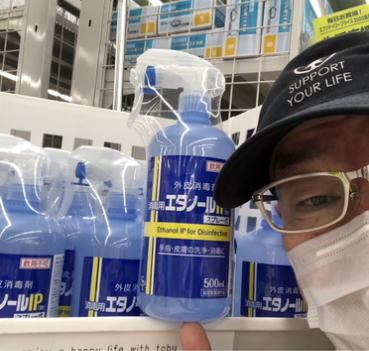 この消毒用エタノールで手指 皮膚の洗浄 消毒をして感染予防に努めましょう。自分のためにそして周りの人のためにみんなが気をつけましょう。