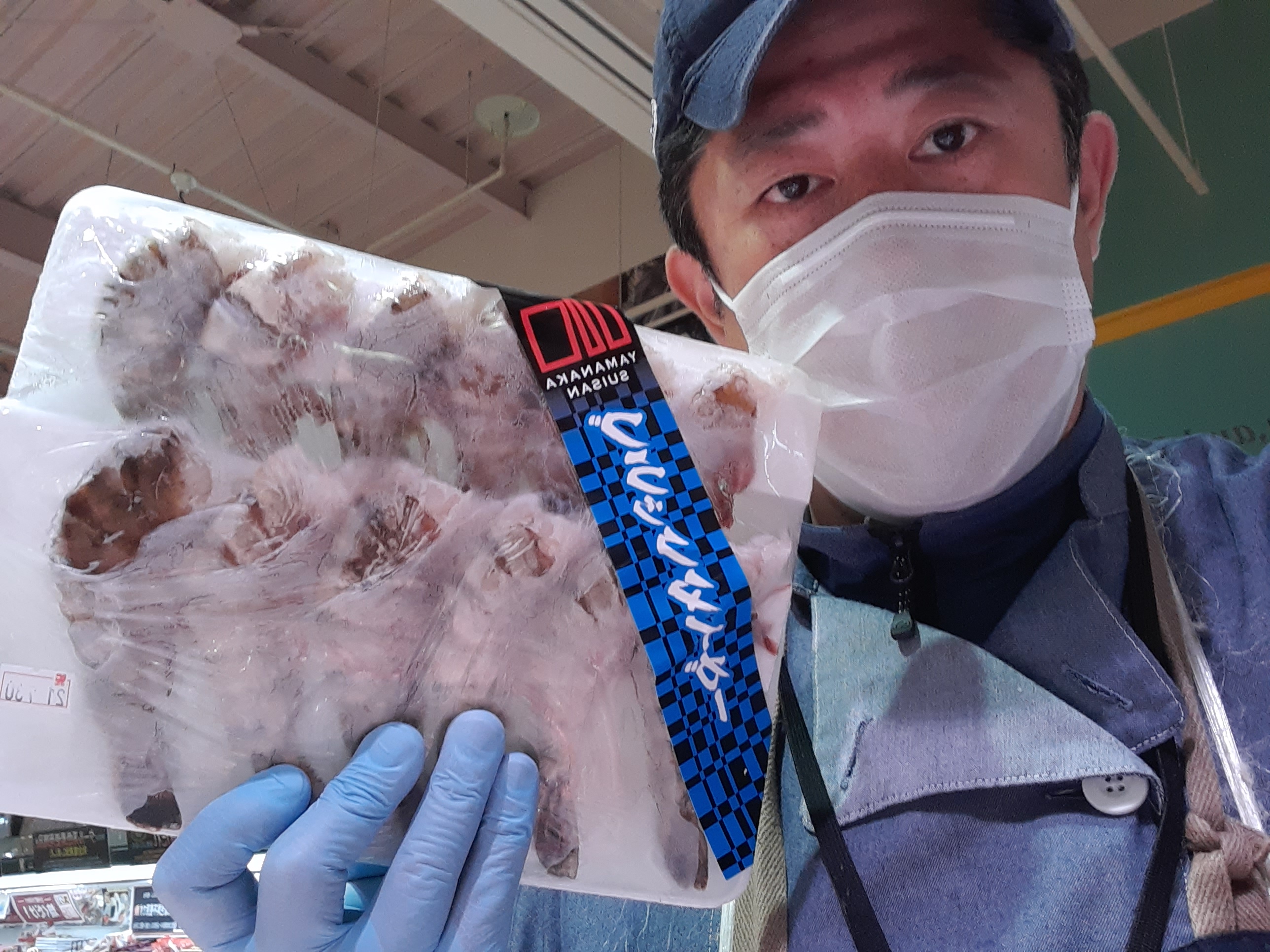 おはようございます。本日は 山中水産 超特大天然エビ 12尾入りで 999円(参考税込価格1078・92 ) 食べ応えは抜群!!エビチリ、エビフライ、エビ天ぷらなど絶対美味しい逸品です。是非お試しください。本日も鮮魚コーナーでお待ちしております。