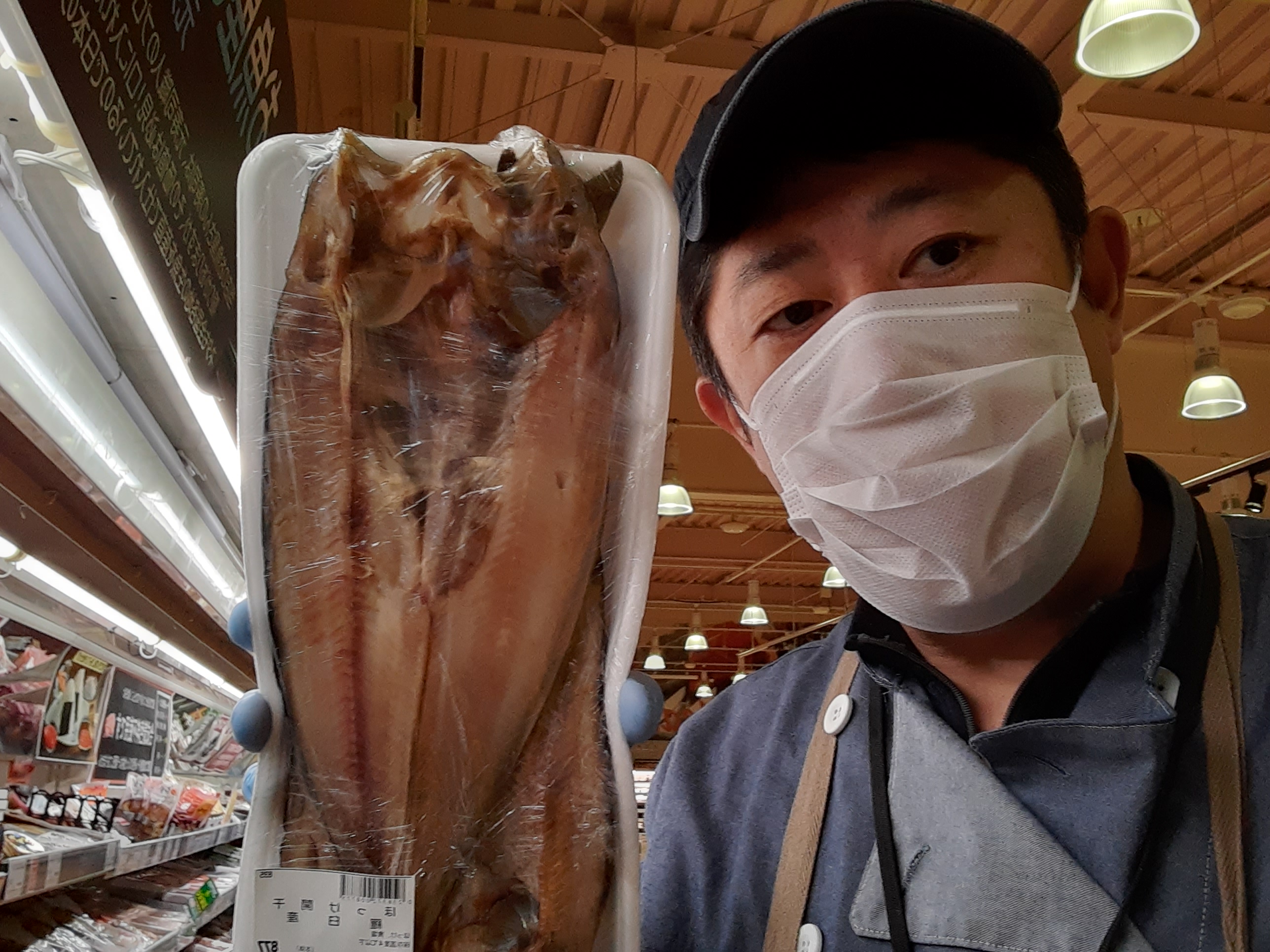 おはようございます。本日は 羅臼産 開きホッケ干し2枚入りで 参考税込価格947・16円です。この大均一際だからこの値段て買える商品!!是非お試しください本日も鮮魚コーナーでお待ちしております。