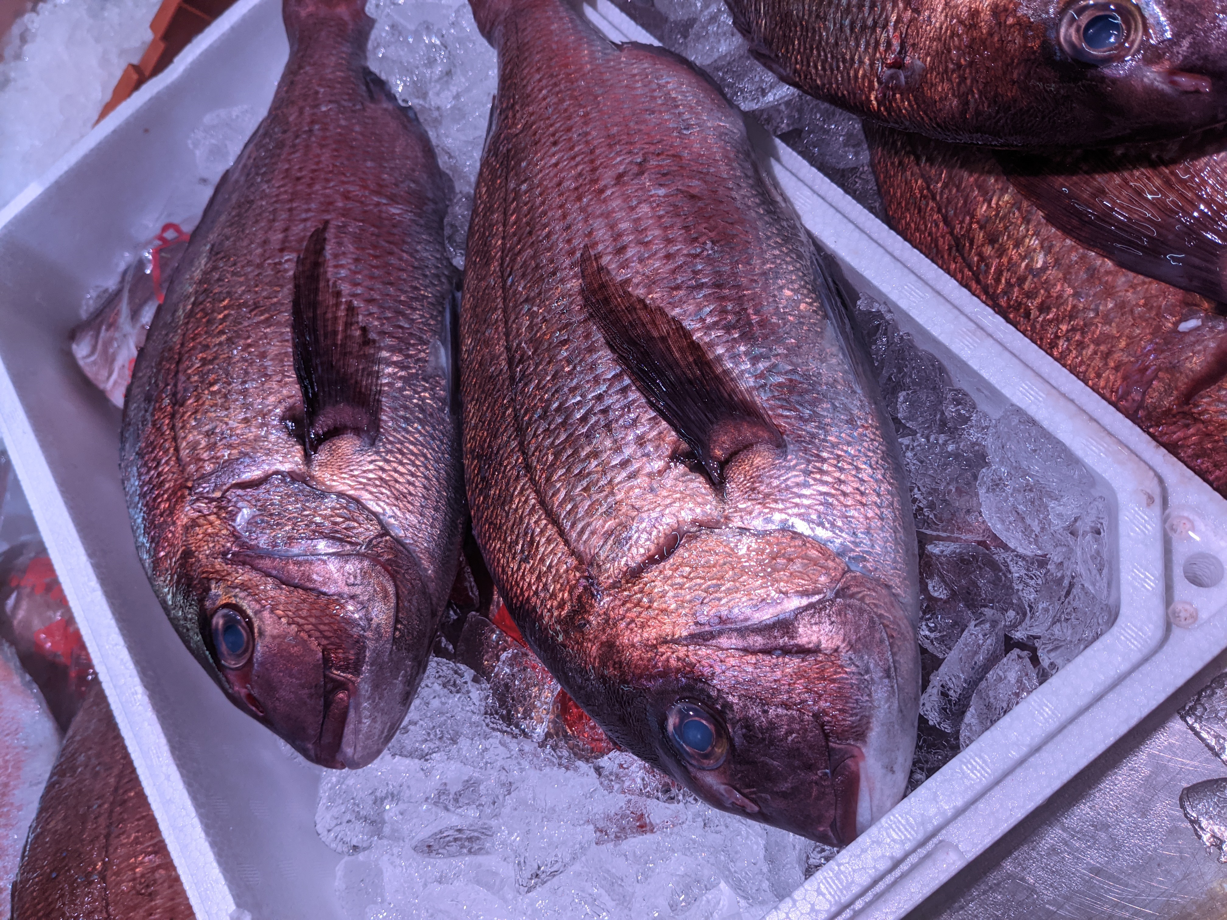鮮魚コーナーでは養殖の真鯛がお買い得!調理も致しますので是非ご利用くださいませ、お待ちしています!