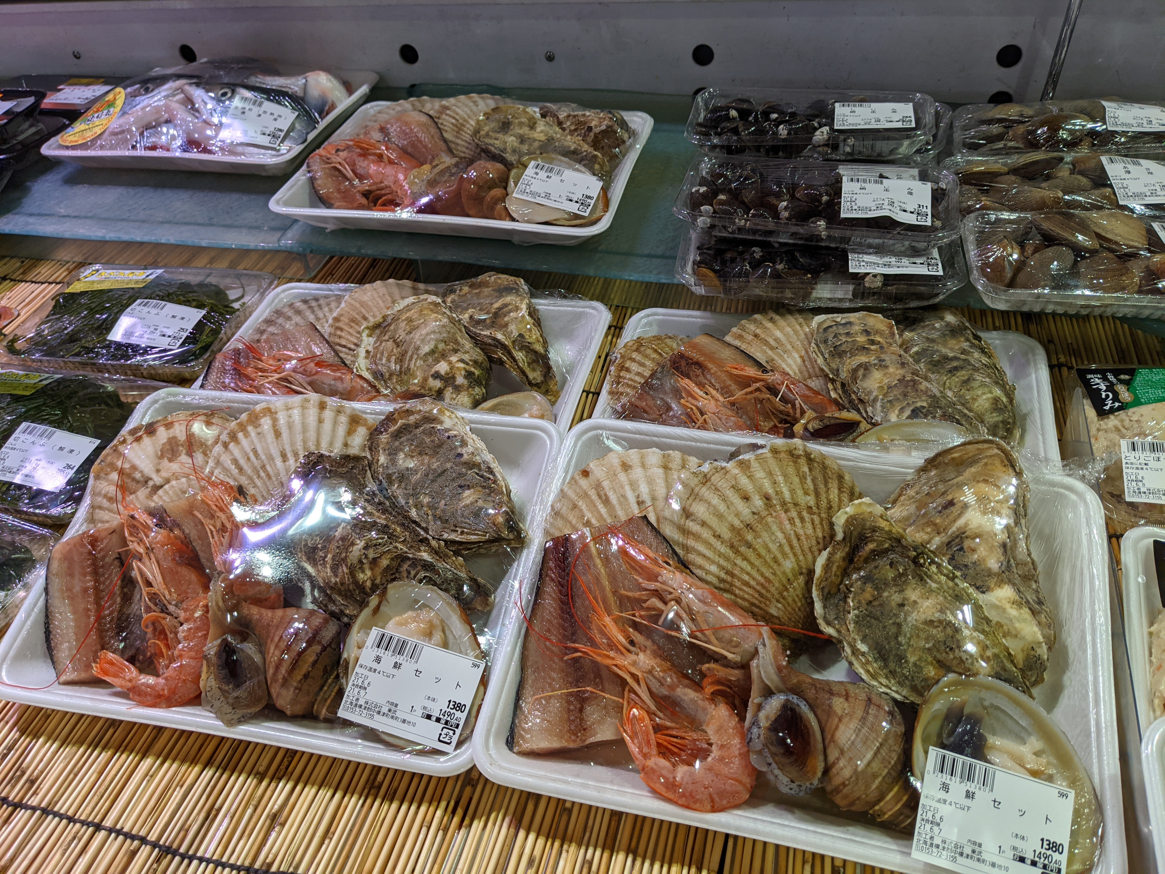 鮮魚コーナーではBBQにもってこいの開きほっけやつぶ、カキを販売中!今日も天気が良さそうです!是非ご利用くださいませ!