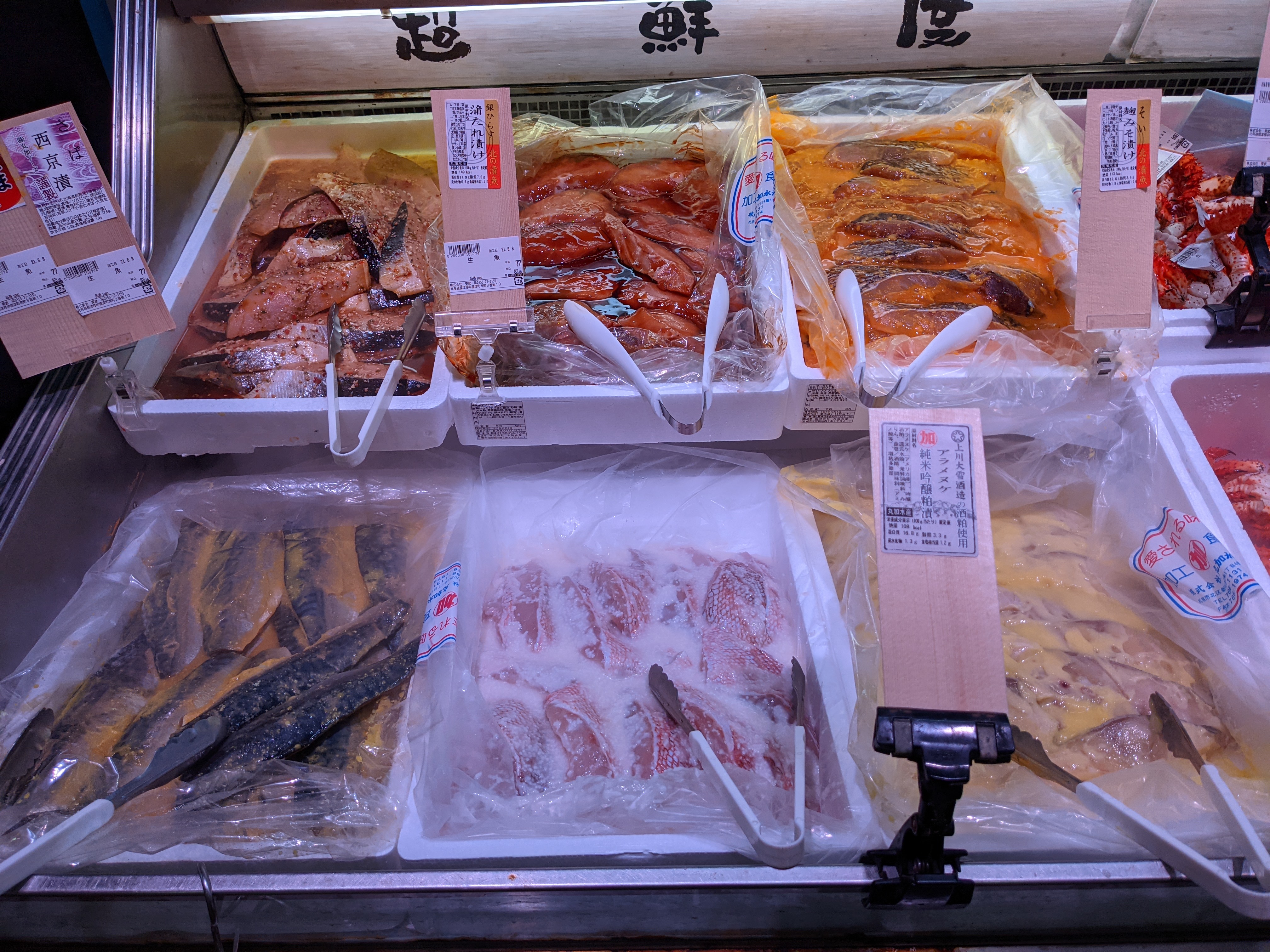 鮮魚コーナーでは漬魚が77円均一で販売中!種類も豊富にございます!是非ご利用くださいませ