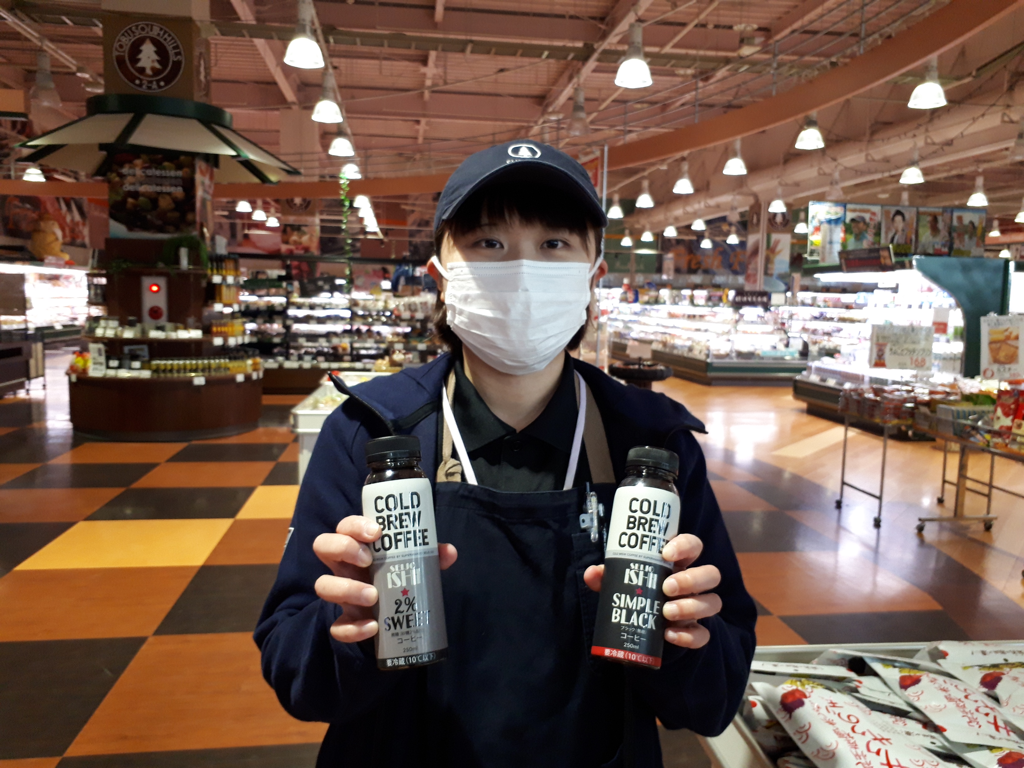 おはようございます。日配コーナーでは、成城石井の美味しいコーヒーを販売しています。低温抽出により、本来の美味しさを引き出した、本格的なコーヒーです。ちょっとお高いですが、ぜひ、お試しください。