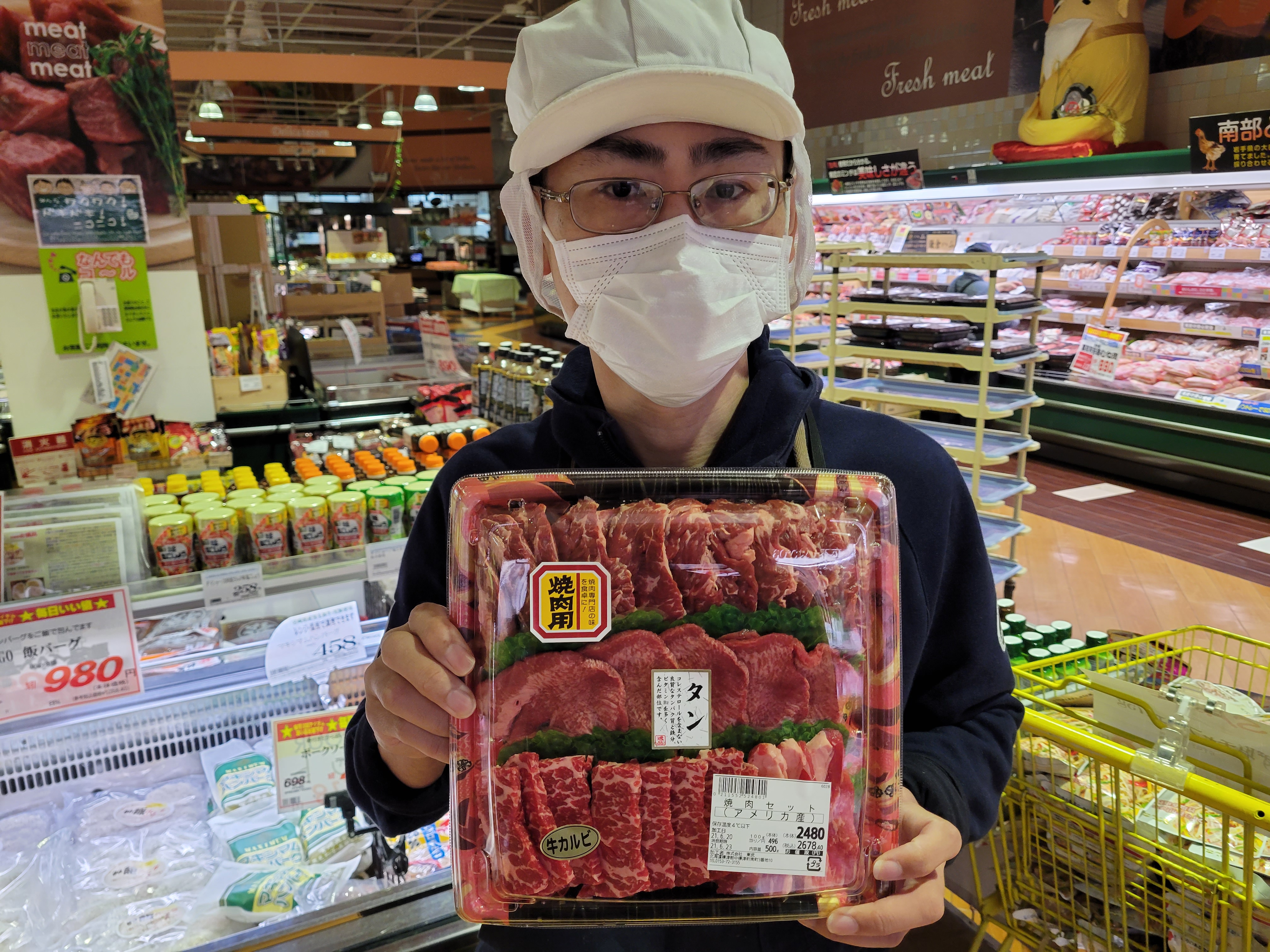 本日ミート担当、小平さんのおすすめは焼肉セットがイチオシです😄人気のハラミ、タン、カルビの入った5人前500g2480円で販売中です🎵ご利用下さいね
