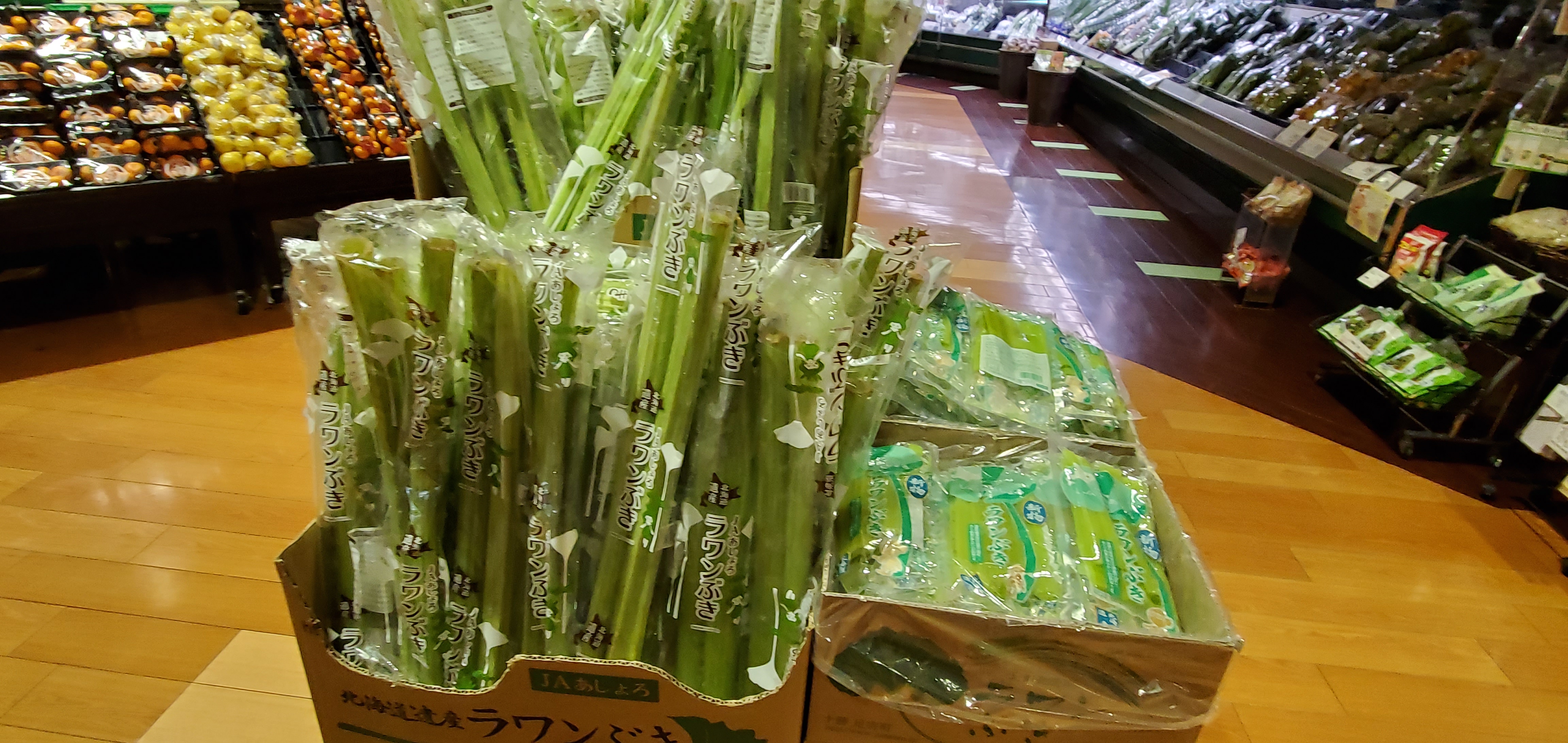 柔らかく美味しいと評判のラワンぶきの新物水煮とこの時期限定の生のラワンぶきを販売してます!人の背丈以上に伸びるふきは美味しいと人気です。生のラワンぶきは今だけなのでお早めにご利用お待ちしております(^-^)