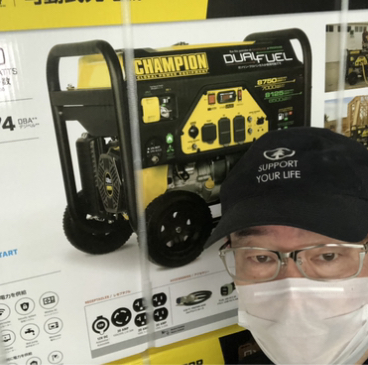 この発電機は燃料にガソリンとプロパンガスが使える二刀流。200vも使えて有事の時には役に立つこと請け合いです。タイヤもついて移動もできます。ぜひご検討ください。