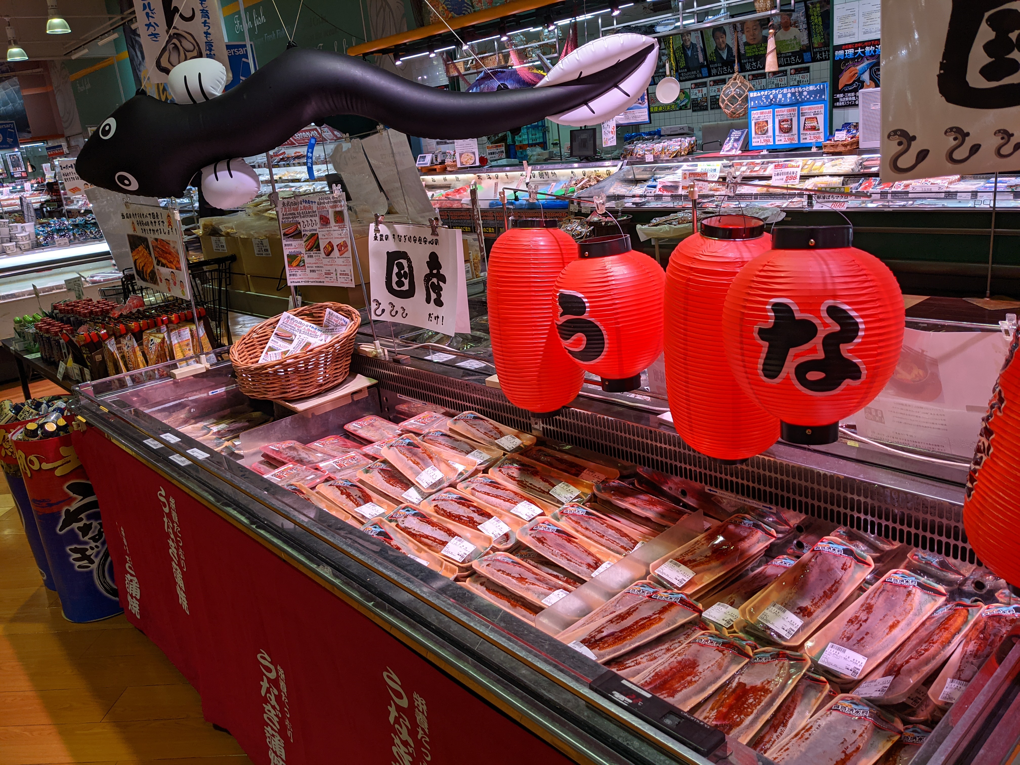 鮮魚コーナーではスタミナの付く美味しいうなぎを販売中!当店は安全安心の国産うなぎのみの販売です!是非ご利用くださいませ!