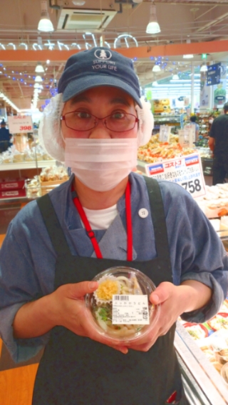 おはようございます。お惣菜コーナーではぶっかけうどんを販売中。この暑い季節、冷たいおうどんはいかがでしょうか?タレも多数ご用意。是非ご利用ください。