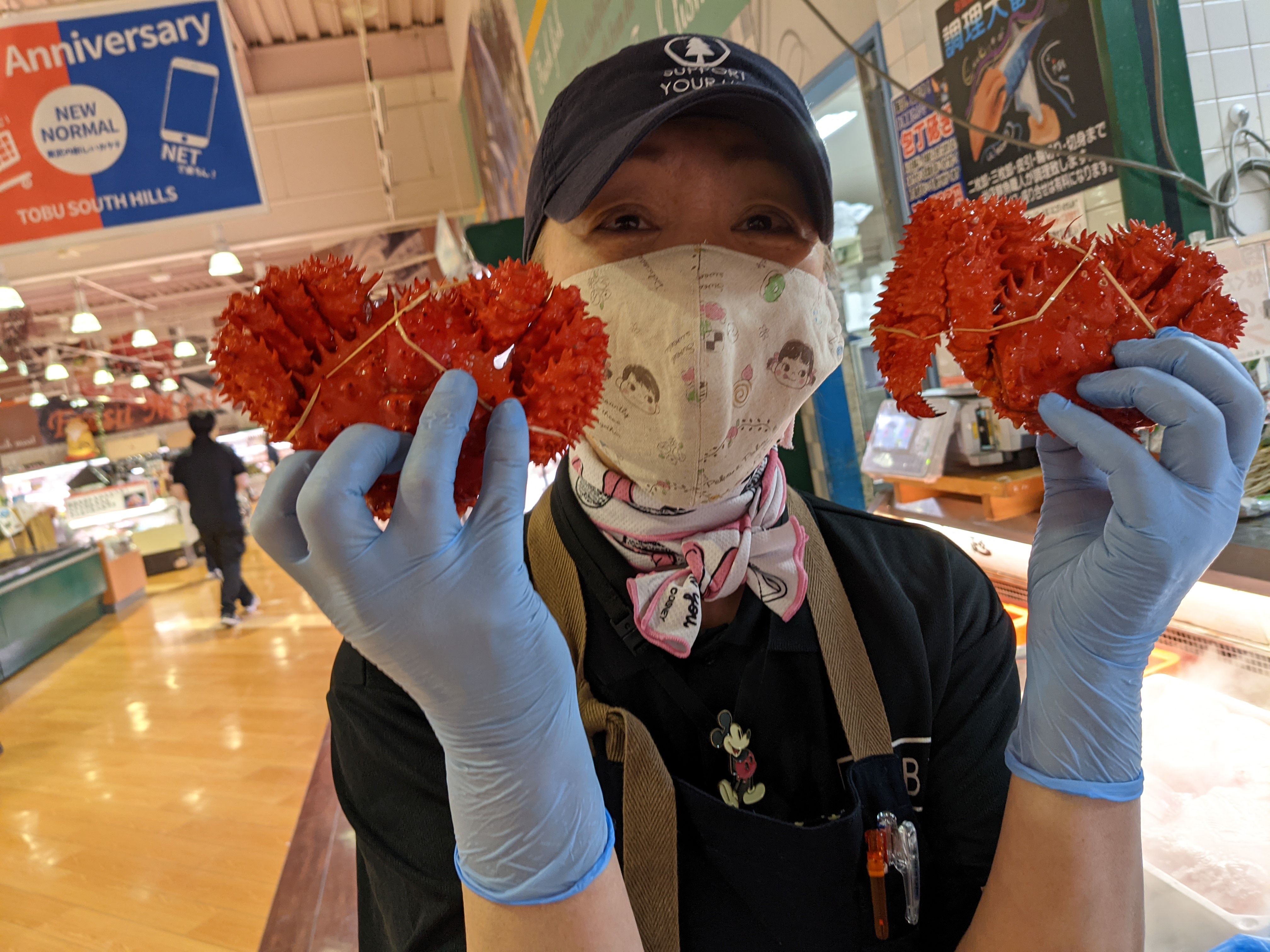 小ぶりですが身の詰まった花咲ガニが1杯350円ですよ!何個でもお買い求めくださいね!