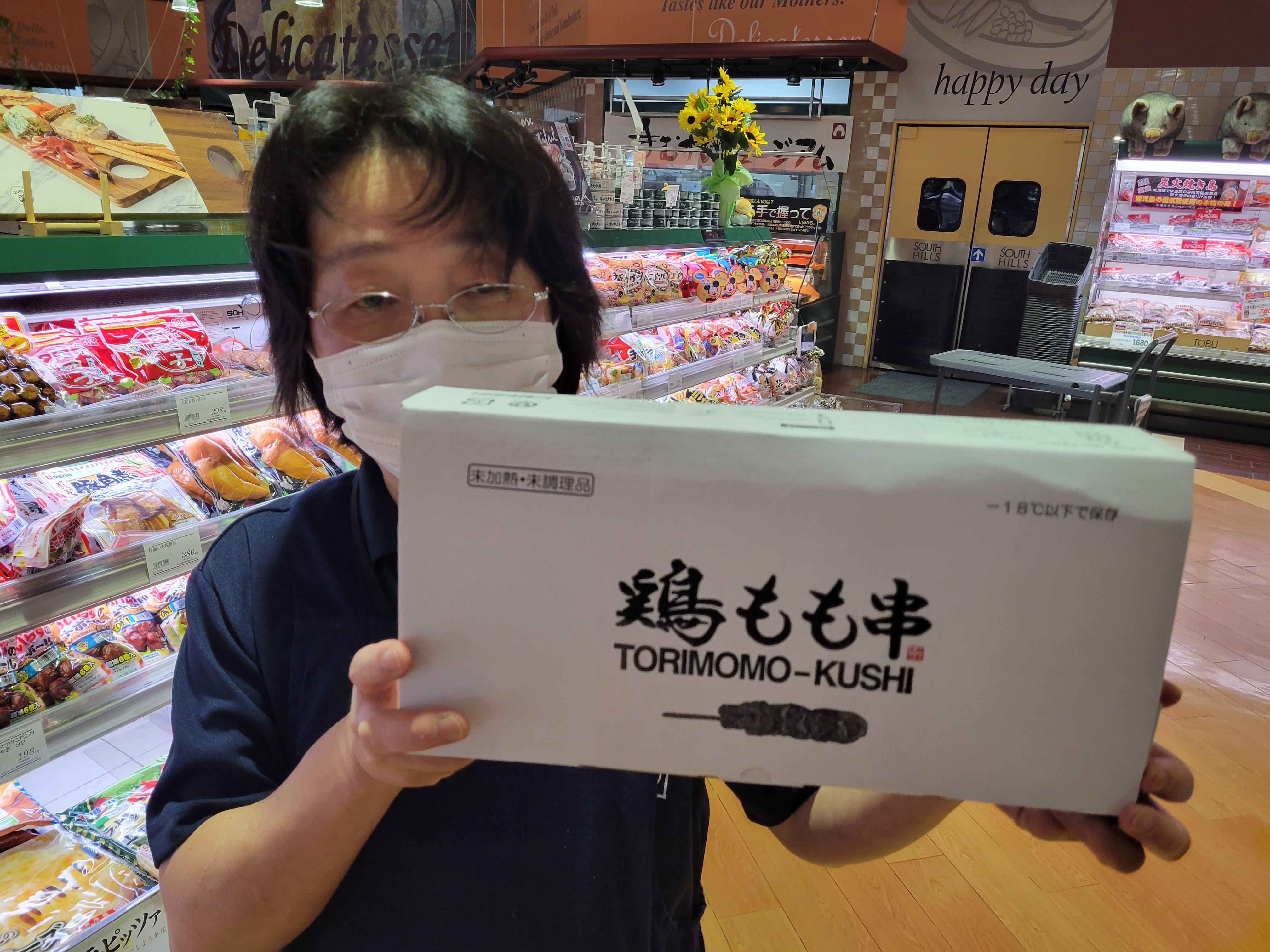 本日ミート担当、平間さんのおすすめはボリュームパック焼鳥がイチオシです串から外して親子丼にも最適です🎵冷凍鶏もも串50本1450円にて販売中ご利用下さいね😄