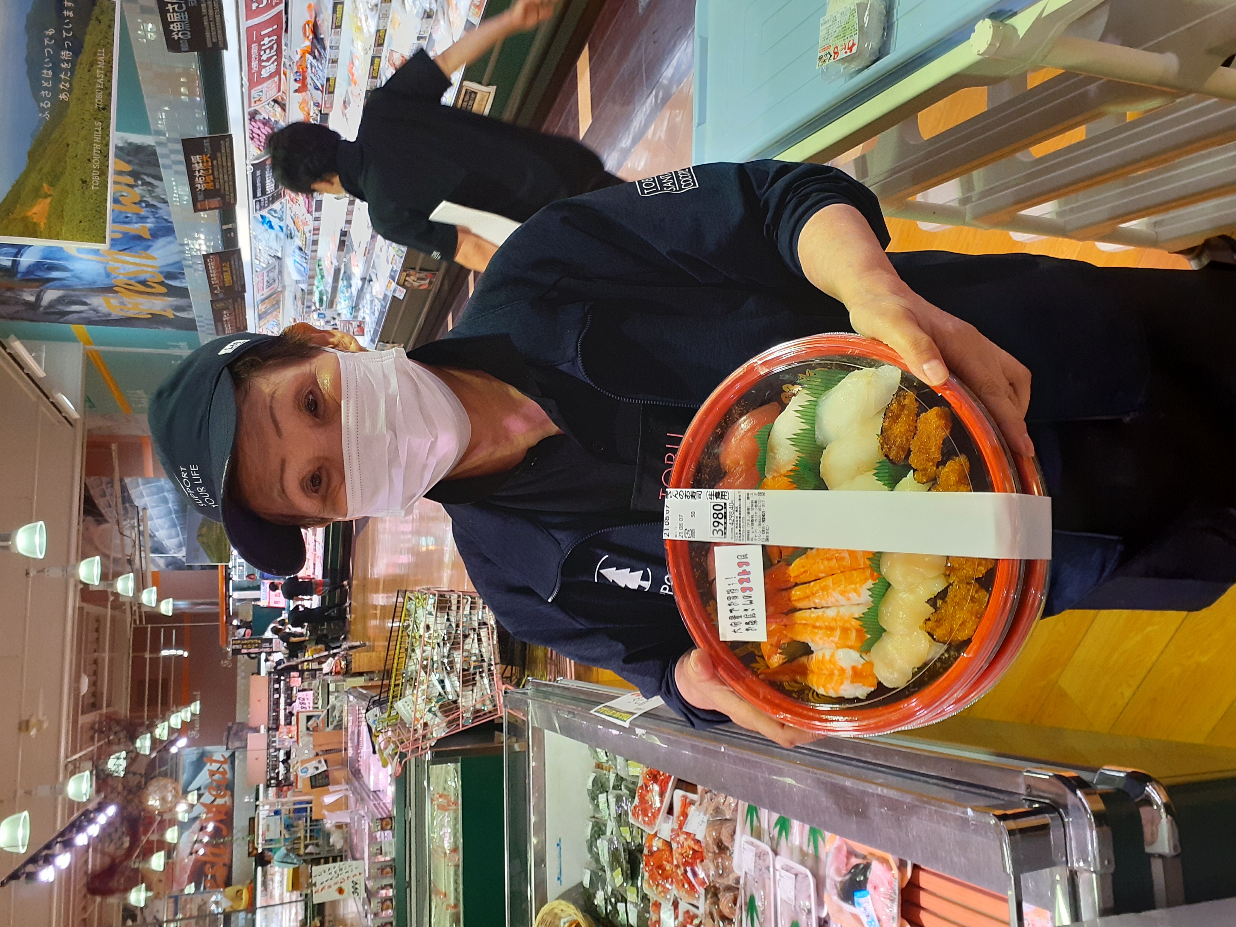 おはようございます。本日はコストコ風 お寿司の盛り合わせ50貫 なんと3980円とお買い得品!!BBQをしながらお寿司をおつまみにはいかがでしょうかぁ!本日も鮮魚コーナーでお待ちしております。