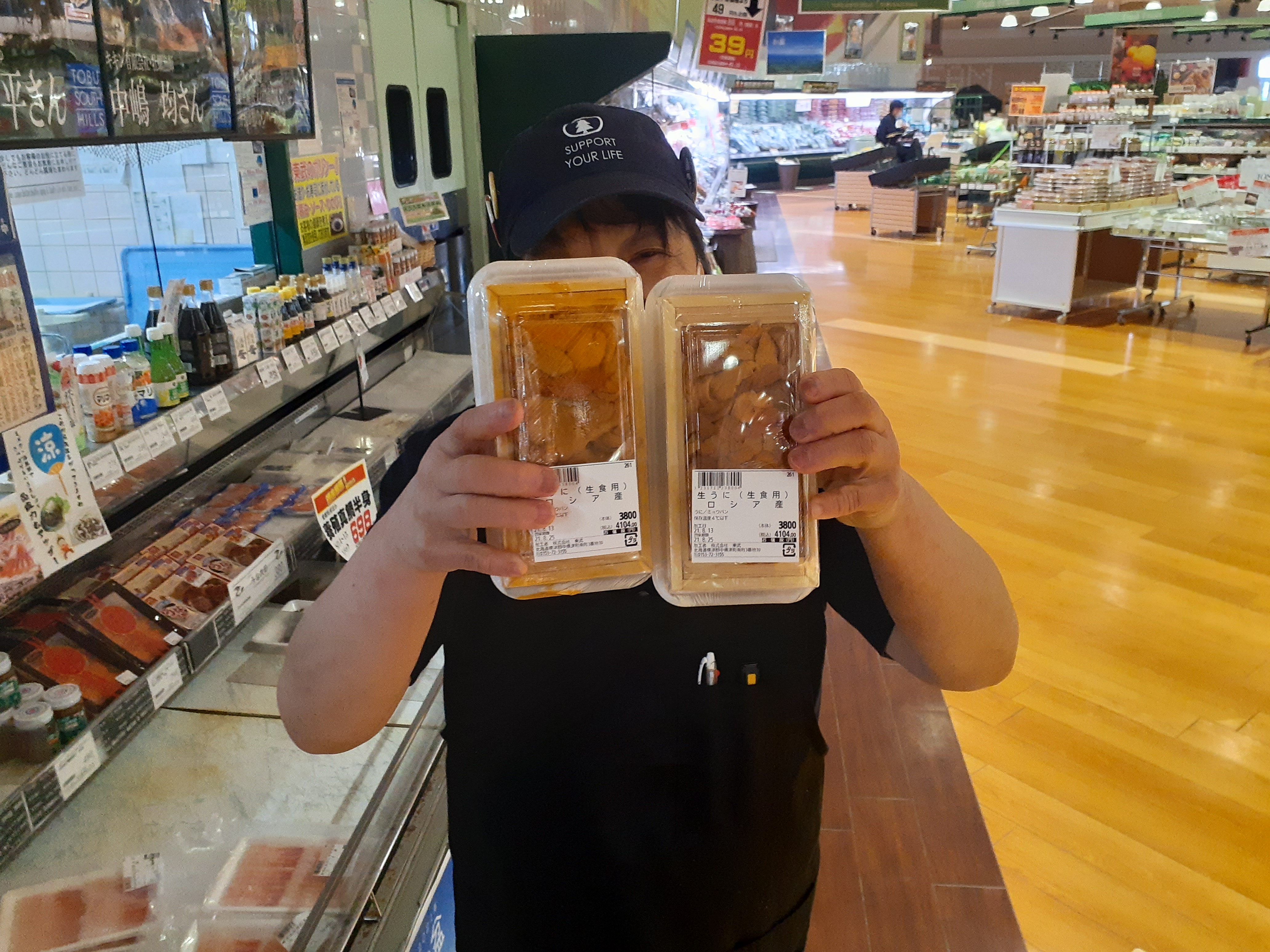 おはようございます。本日は ロシア産 生うになご紹介です!参考税込価格は4104・00円家族が集まりちょっと贅沢はいかがでしょう❓お値段は少し高めですがとても美味しい商品です!!是非ともお試しください。本日も鮮魚コーナーでお待ちしております。