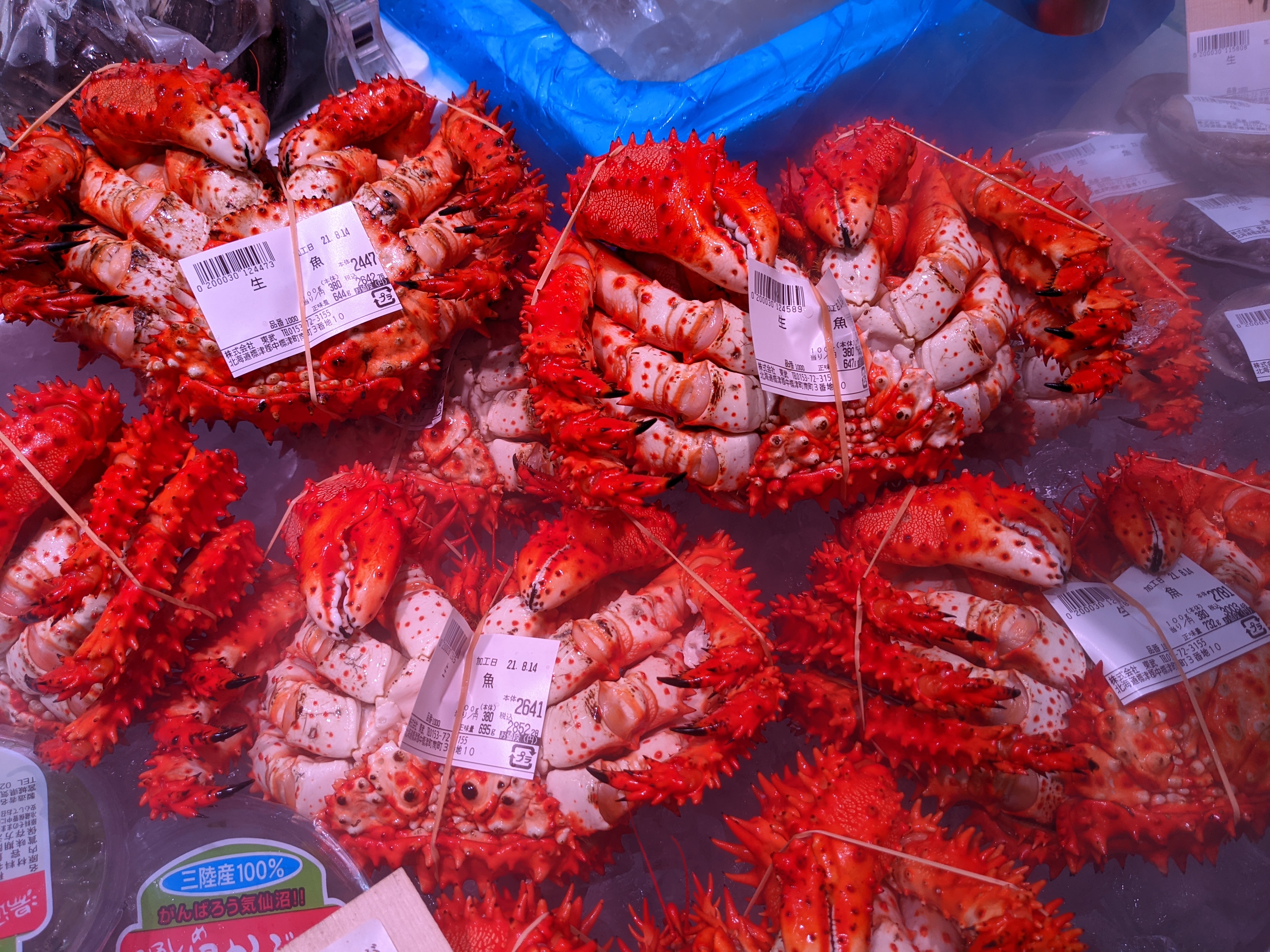 鮮魚コーナーではずっしり重たい花咲カニを販売中!冷凍していませんので美味しさが違いますよ!是非ご利用ください