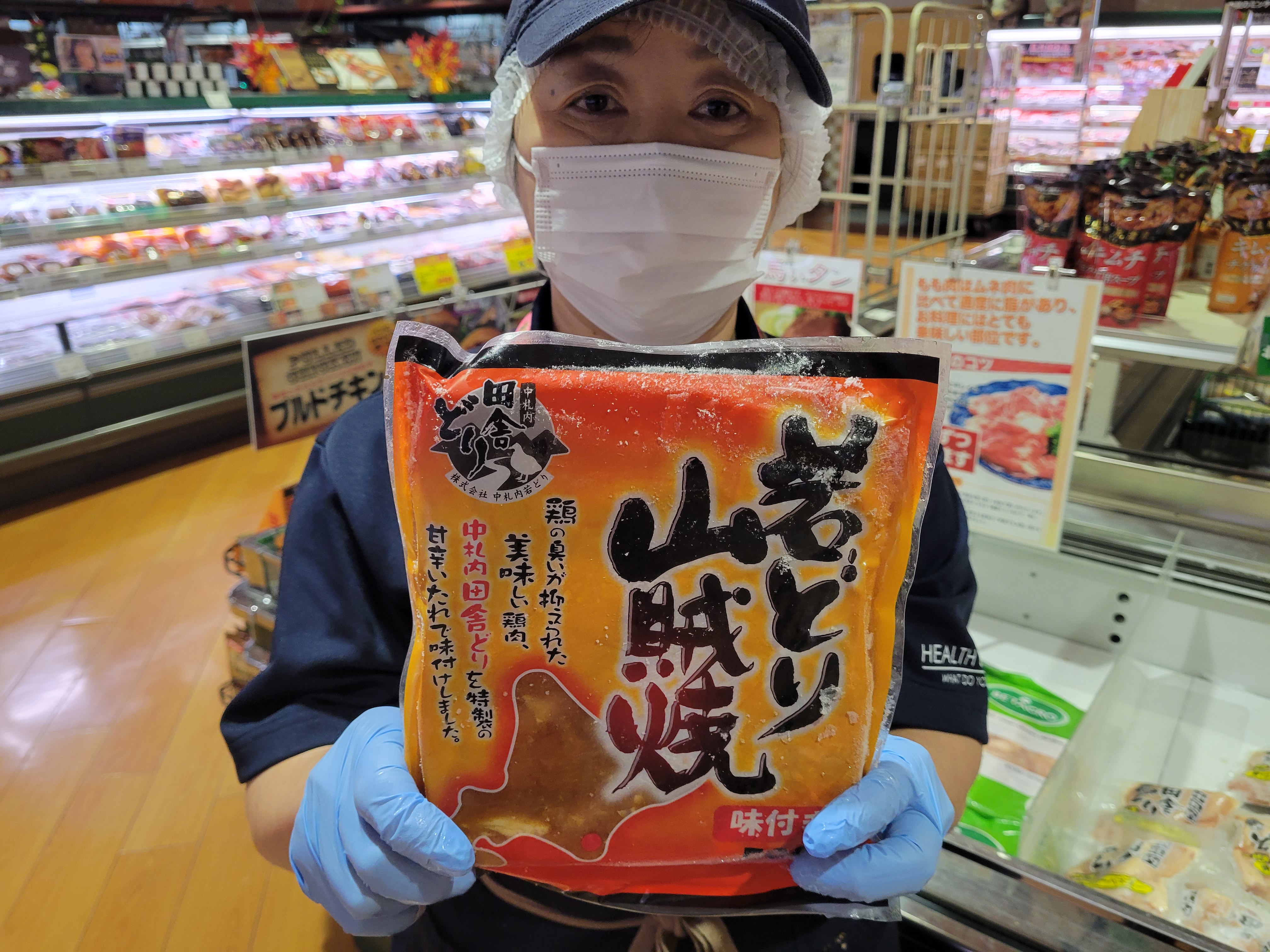 本日ミート担当、宮崎さんのおすすめは中札内田舎どり山賊焼がイチオシ🎵鶏の臭いが抑えられた美味しい鶏肉中札内田舎どりを特製の甘辛いたれで味付けしてます、1袋595円で販売中ご利用下さいね😄