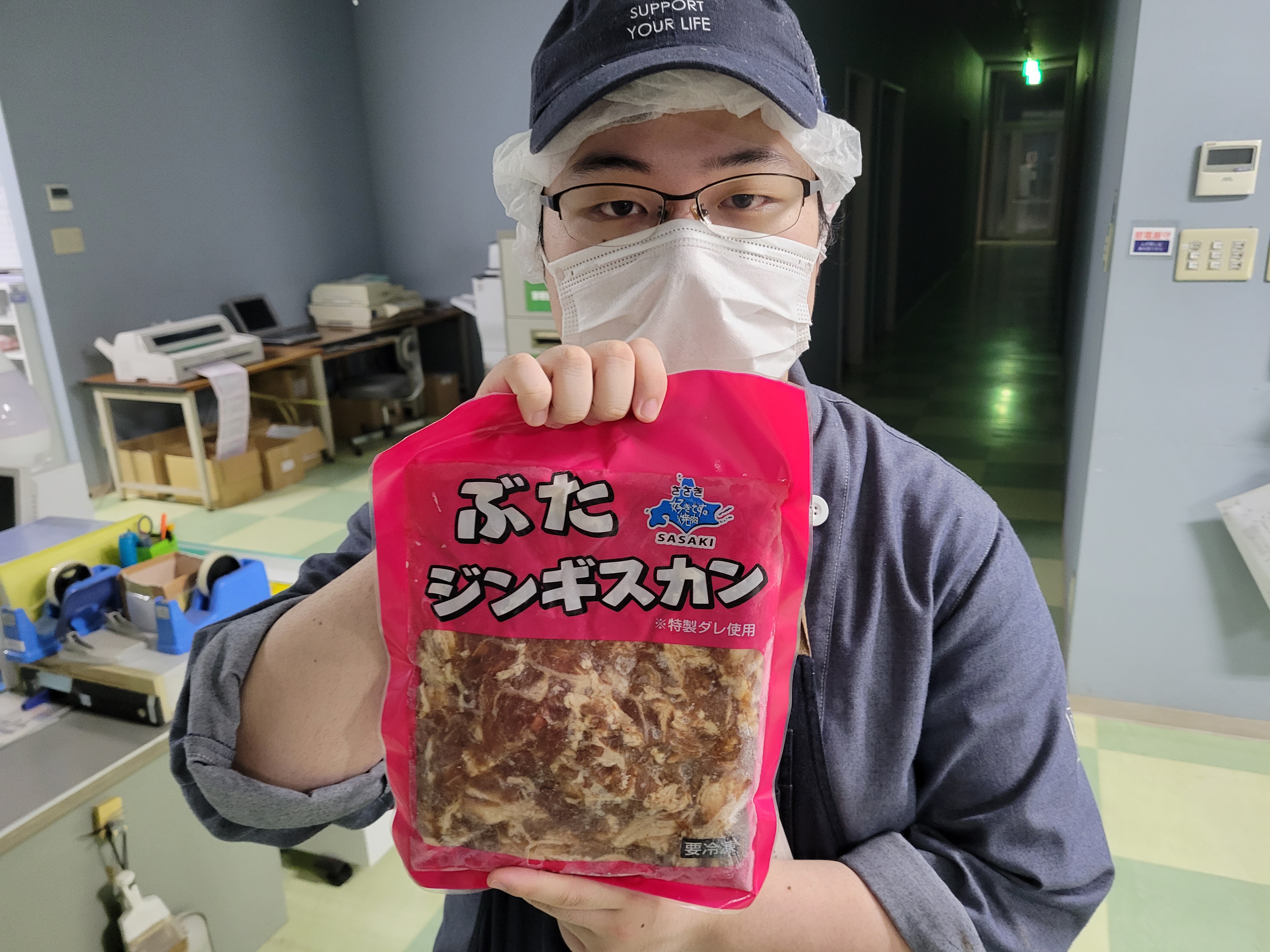 本日ミート担当、田中さんのイチオシ佐々木畜産豚ジンギスカンがおすすめです🎵、佐々木畜産自家製のタレに漬け込んで作った自慢の一品驚きの500g398円で販売中ご利用下さいね、