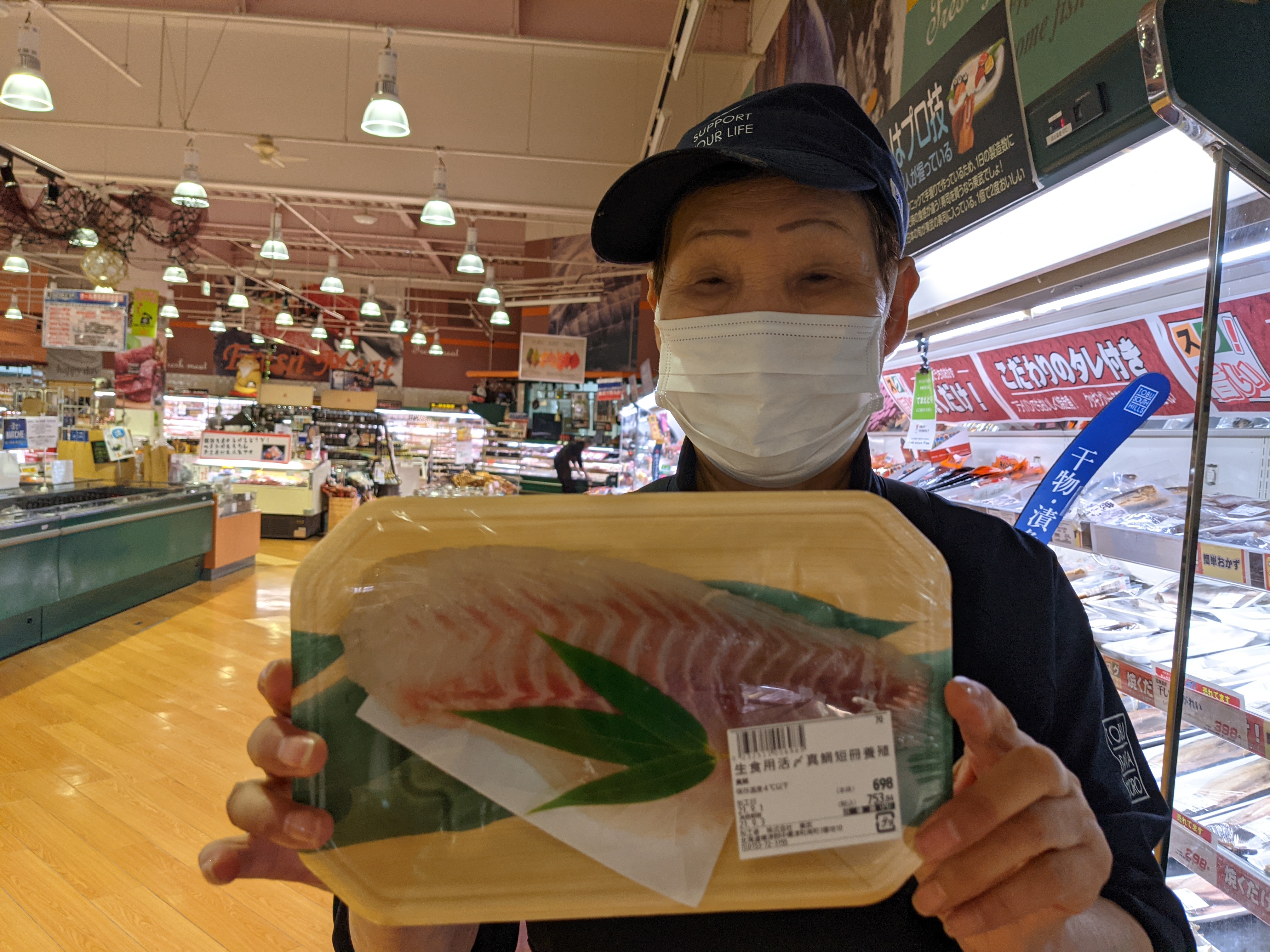 鮮魚コーナーでは鯛の半身がお買い得!お刺身がとっても美味しい鯛です!是非ご利用くださいませ!