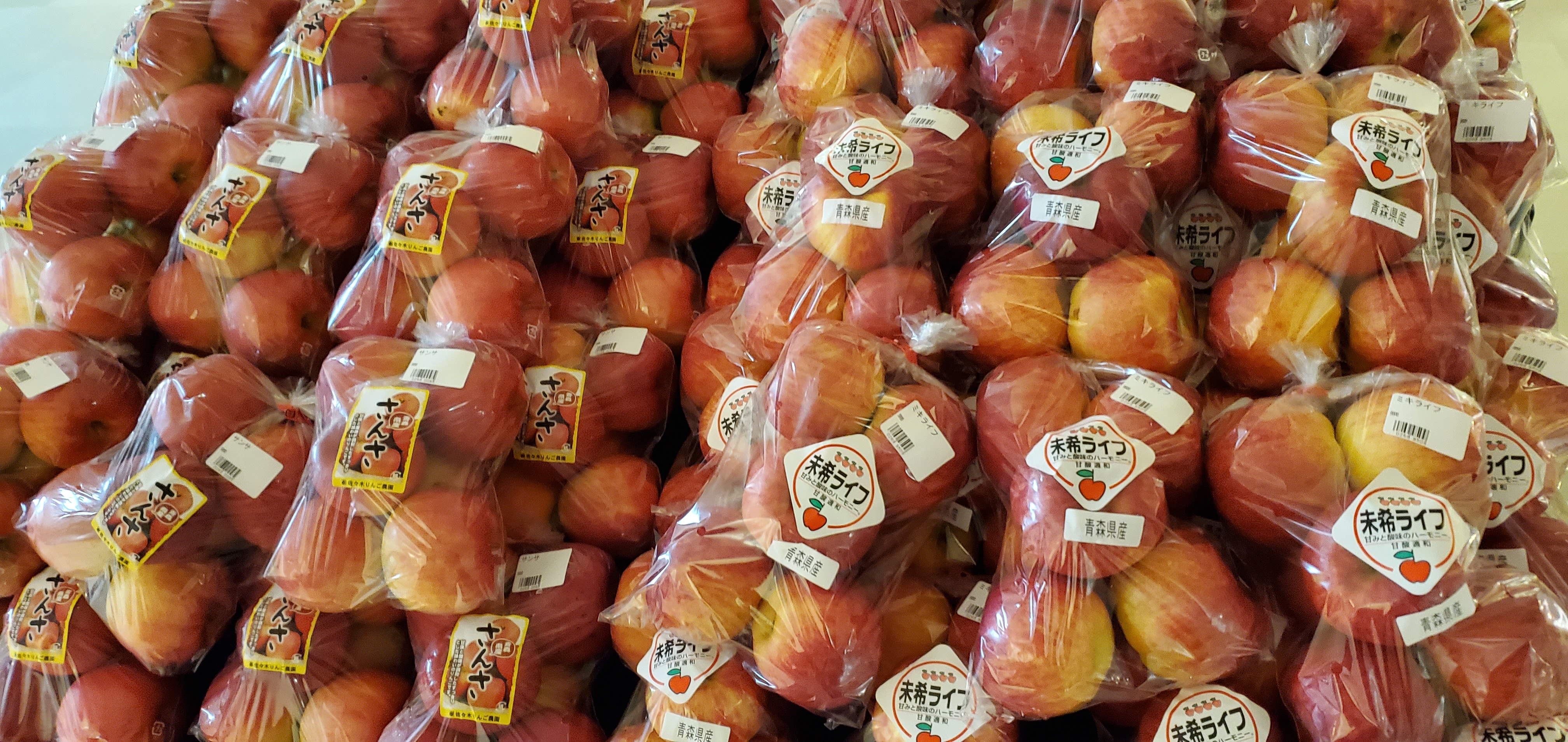 今年採れた新リンゴが入荷しました。オススメは6個入りお徳用サイズ『サンつがる』『きおう』『あかね』『ミキライフ』『さんさ』の5種類です。ぜひ、ご利用お待ちしております(^-^)