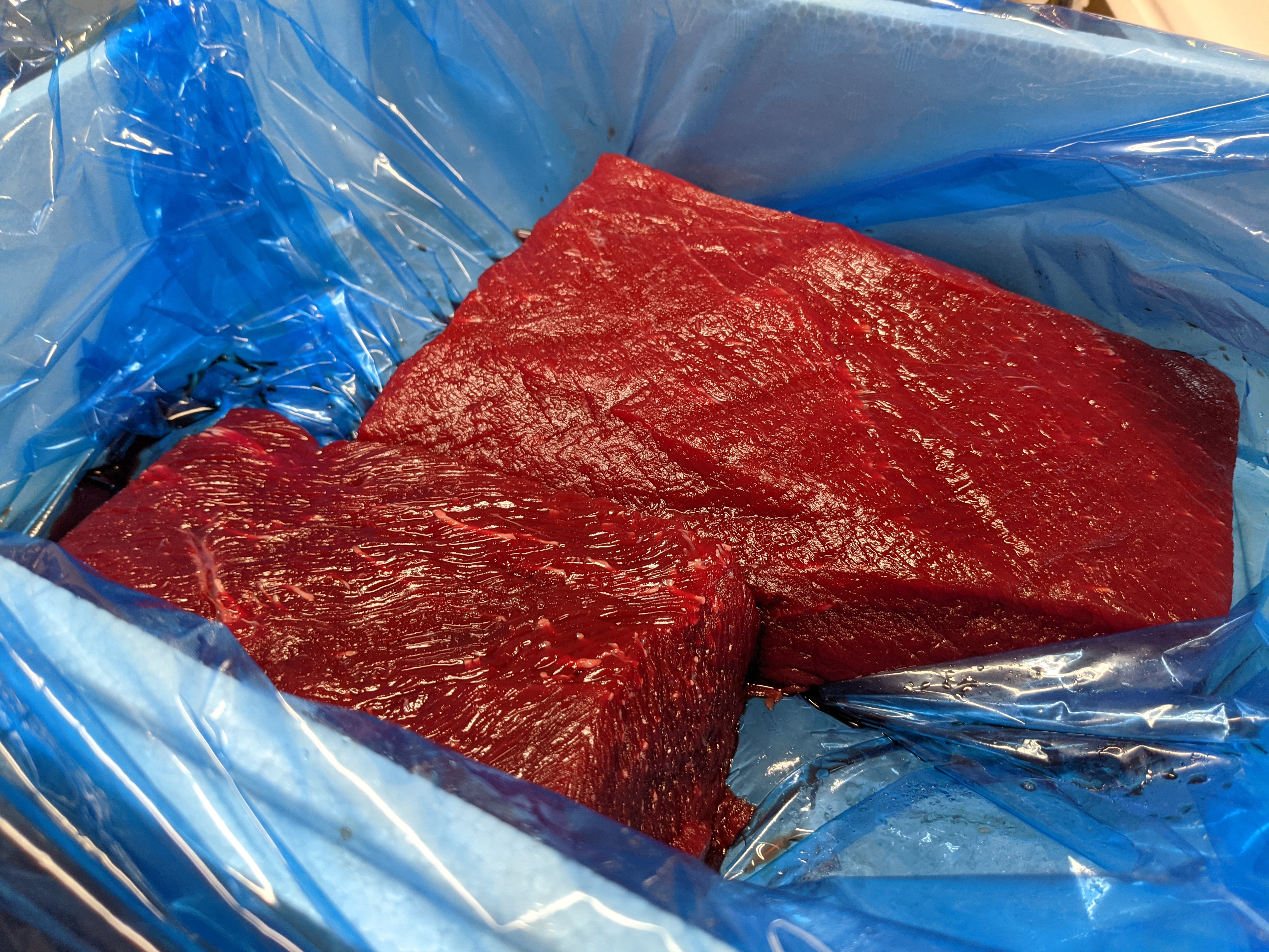 鮮魚コーナーではクジラの赤身が入荷しています、お刺身でも美味しいクジラを是非ご利用くださいませ