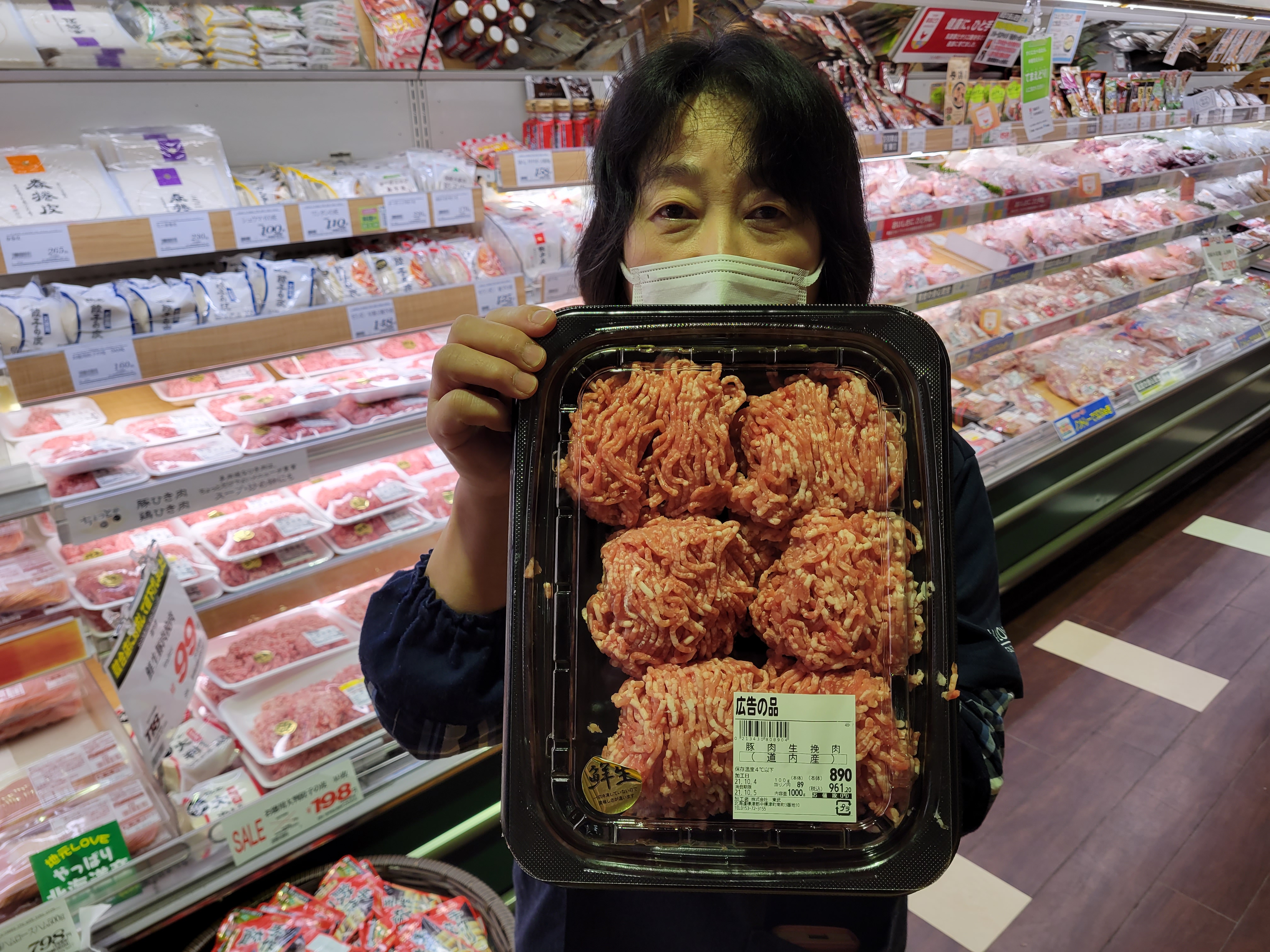 本日ミート担当、平間さんのおすすめメガ盛り豚鮮生ひき肉がイチオシ当店のひき肉はいっさい冷凍してない生肉で挽いているため、美味しさが違います、挽肉は料理用途も豊富約1kg850円にて販売中ご利用下さいね🎵