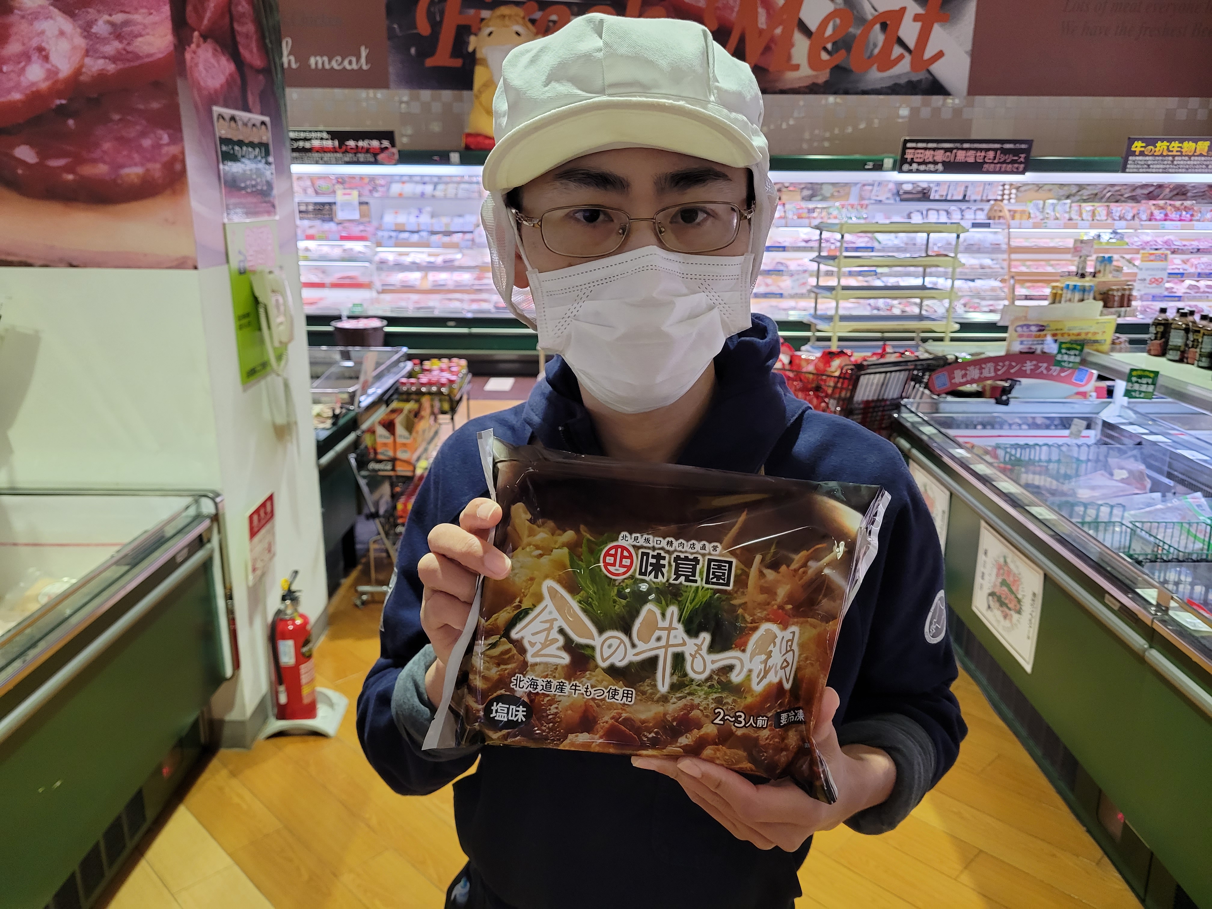 本日ミート担当、小平さんのおすすめ今一番売れている、鍋商材味覚園、金のもつ鍋がイチオシです北海道産の牛ホルモンを贅沢に使いました。通常価格698円で販売している商品を599円にて販売中。ご利用下さい。😄